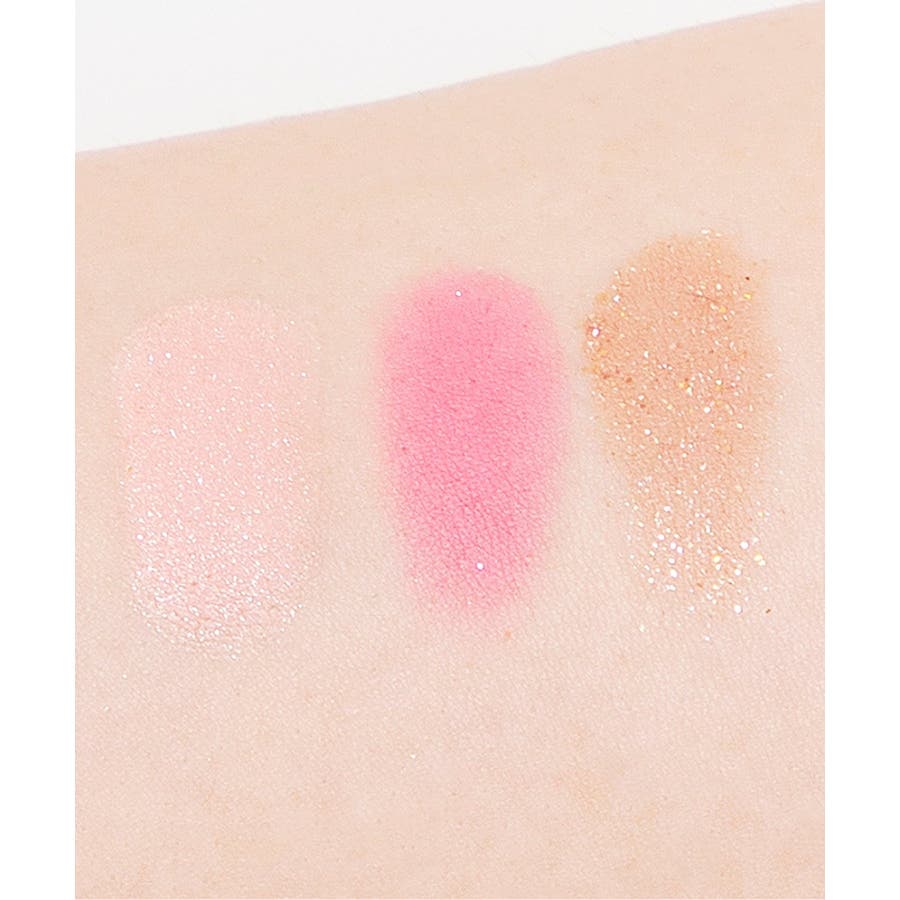 ピンク:左上 / 右上の色: タルク、マイカ、合成フルオロフロゴパイト、シリカ、ステアリン酸Mg、オクテニルコハク酸デンプンAI、 オキシ塩化ビスマス、 ポリエチレン、ジメチコン、パルミチン酸エチルヘキシル、 ミネラルオイル、ポリイソブテン、フェノキシエタノール、トリエトキシカプリリルシラン、(+/-)酸化鉄、酸化チタン、黄4、赤201、 赤202、 赤104 (1)