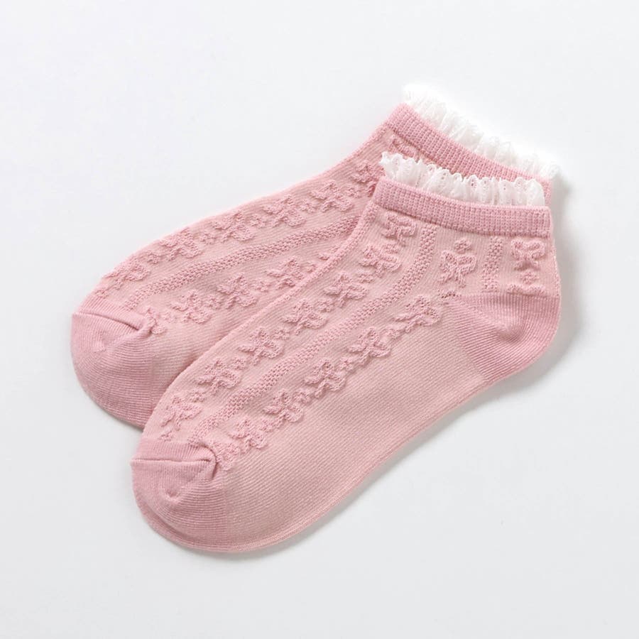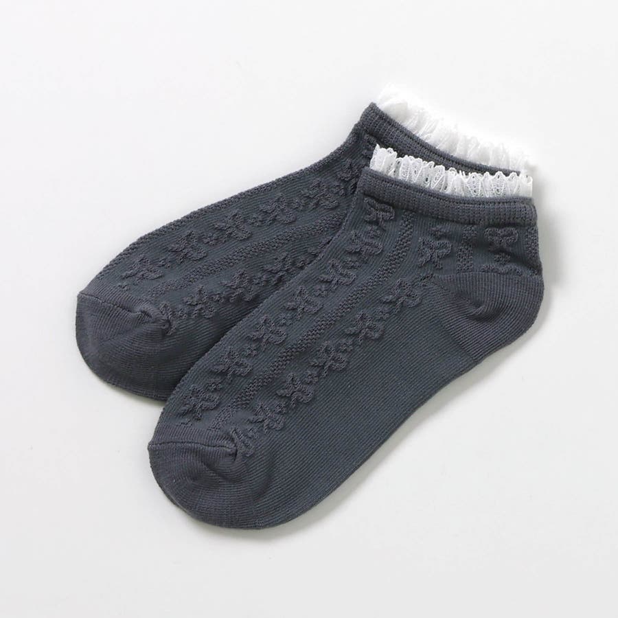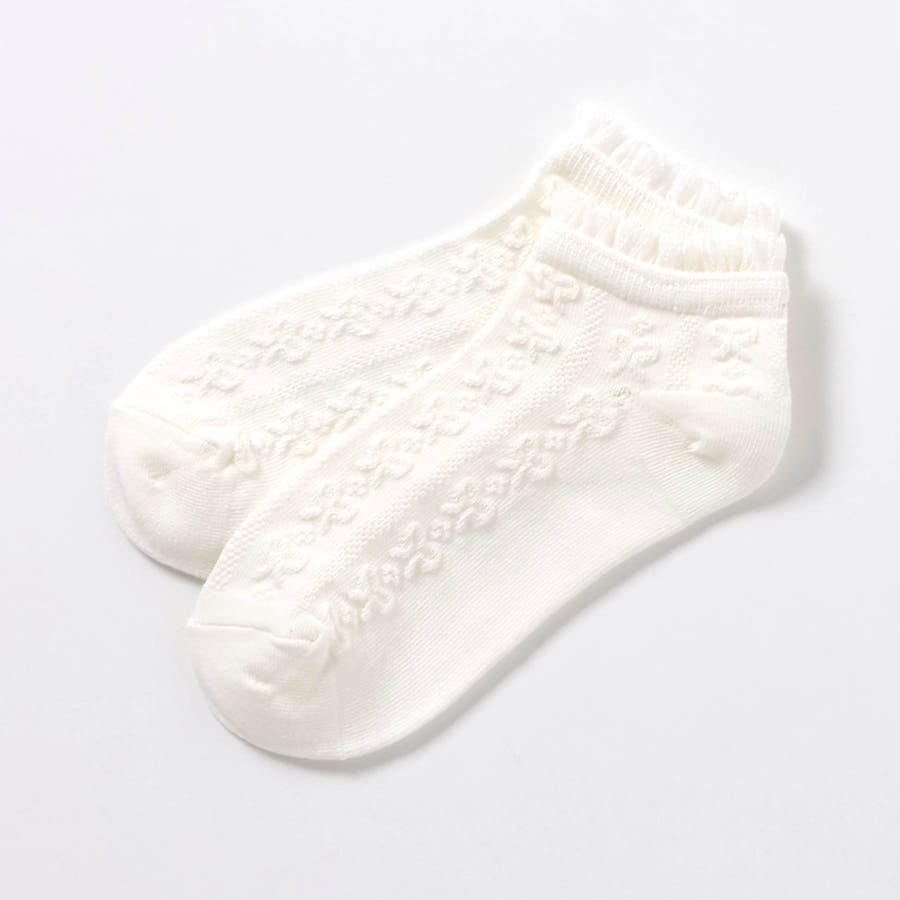 リボン柄フリルショートソックス