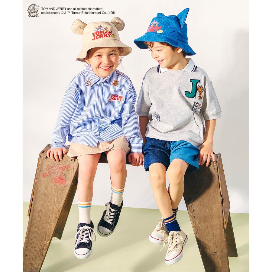 トムやジェリーのイニシャル入りの襟付きTシャツ。