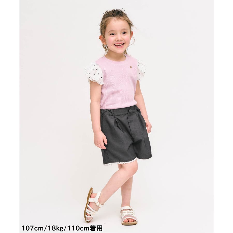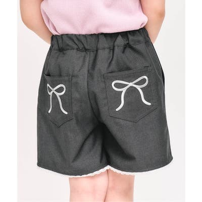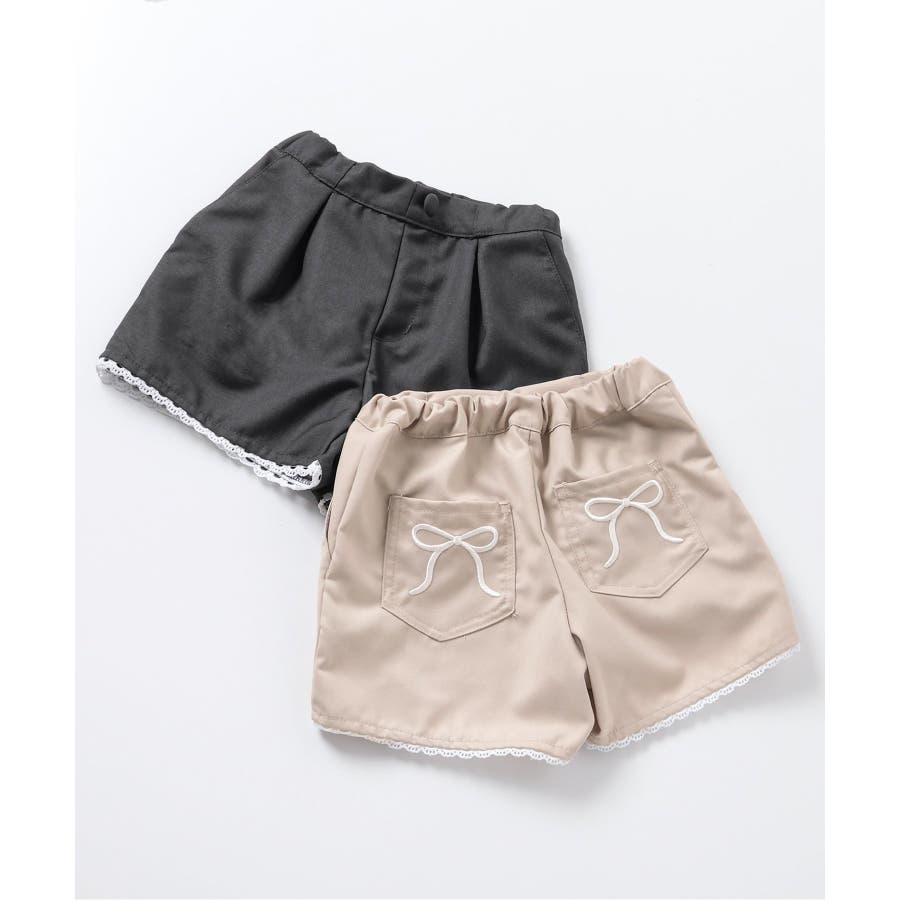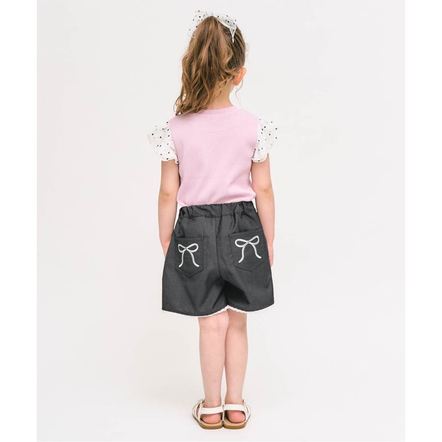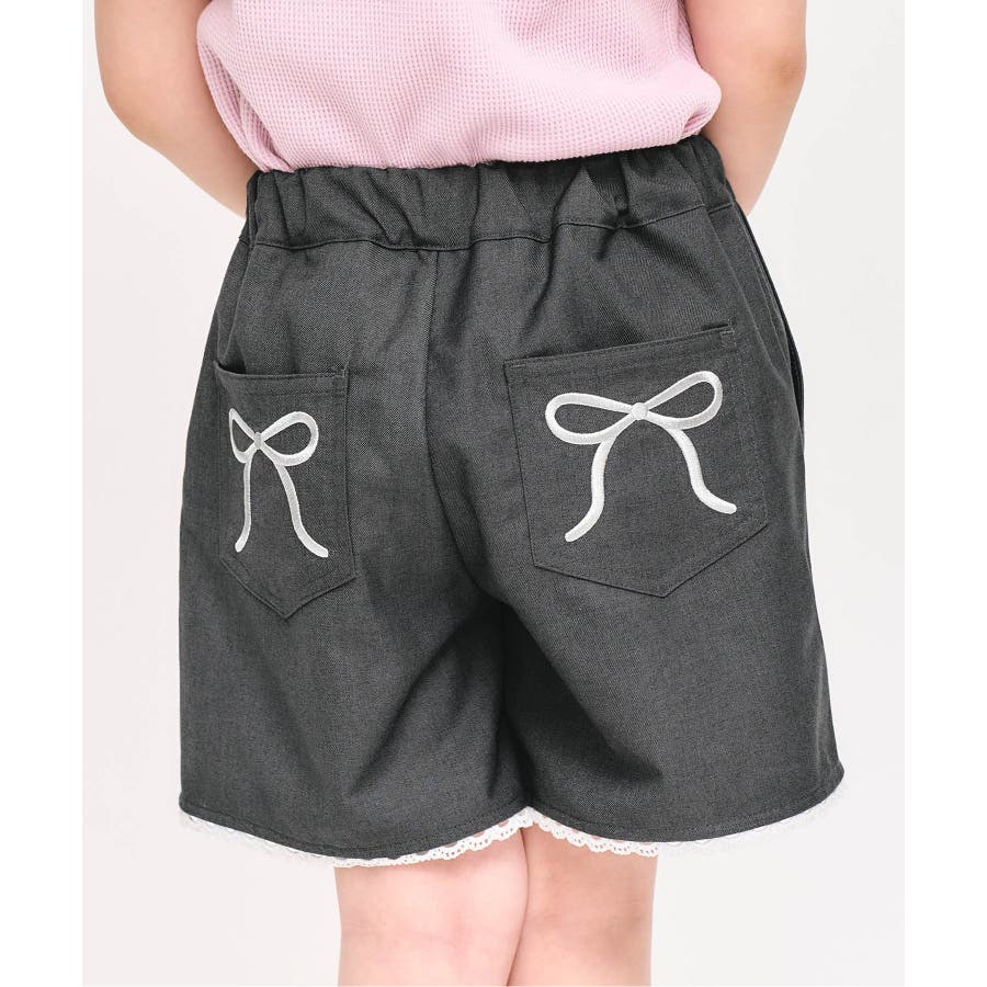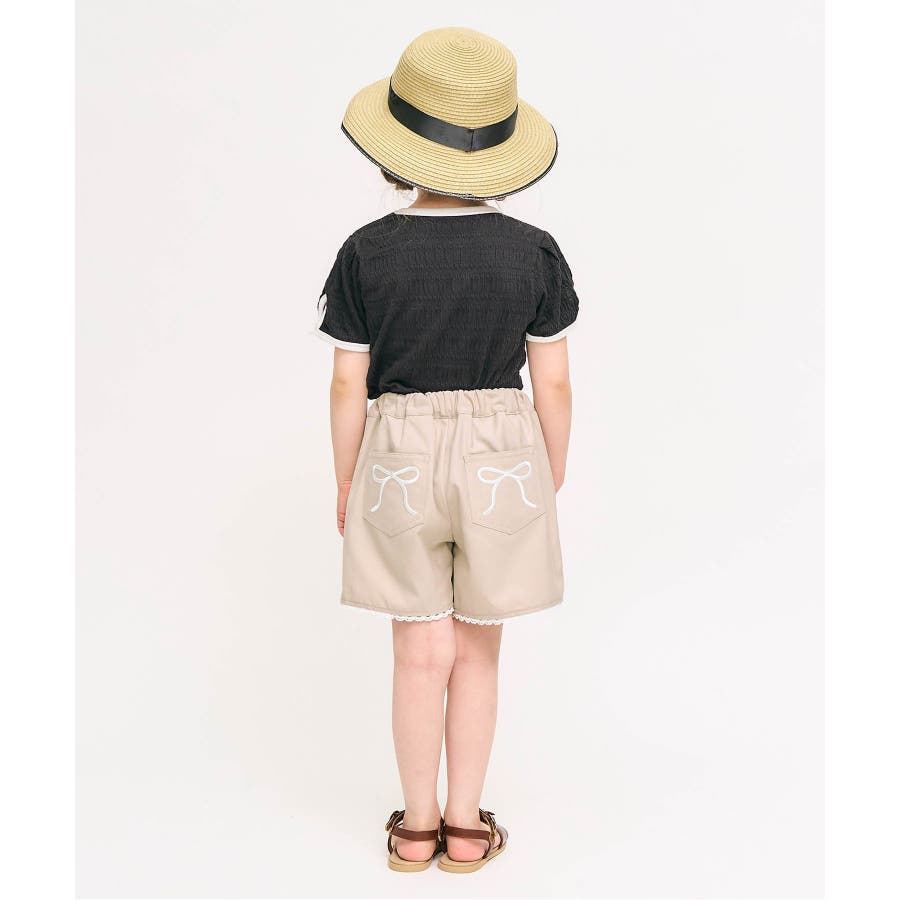 リボン刺繍タックハーフパンツ ショート丈