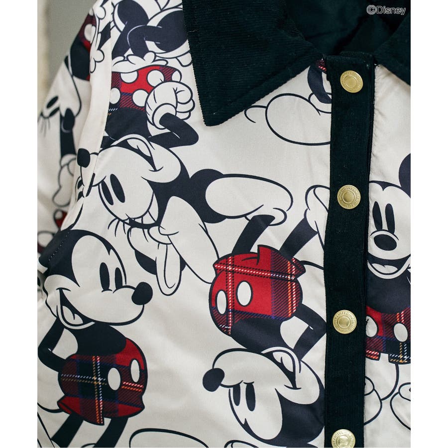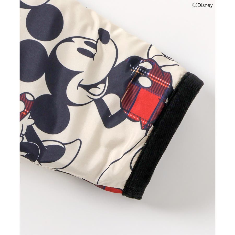 ミッキー、ミニーの総柄デザインと、バックにインパクトのある刺繍デザインのどちらもつかえる、スペシャルジャケット!