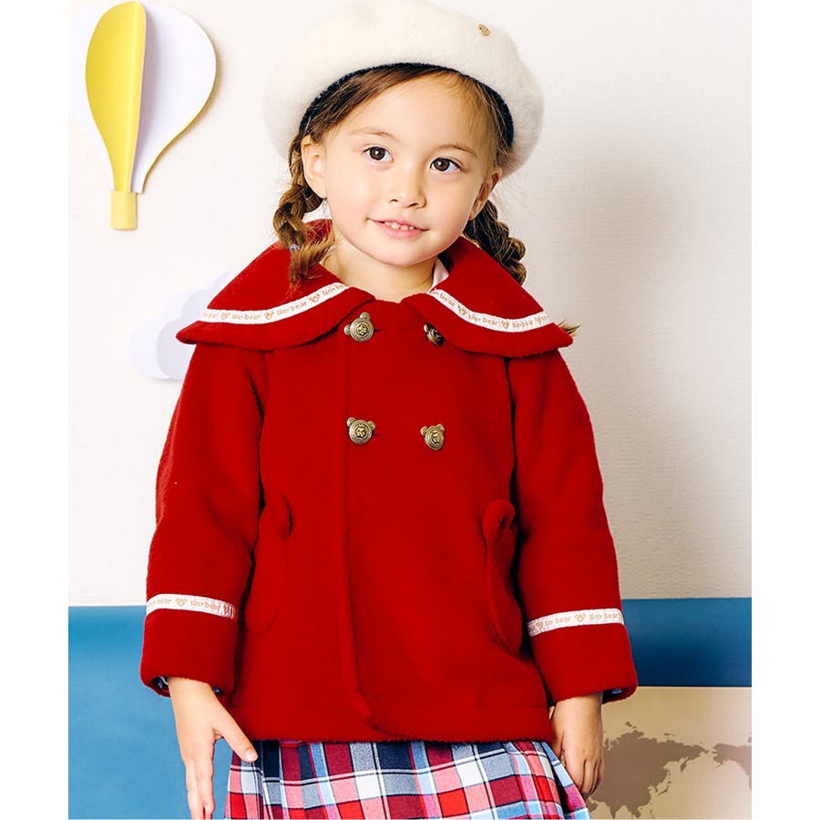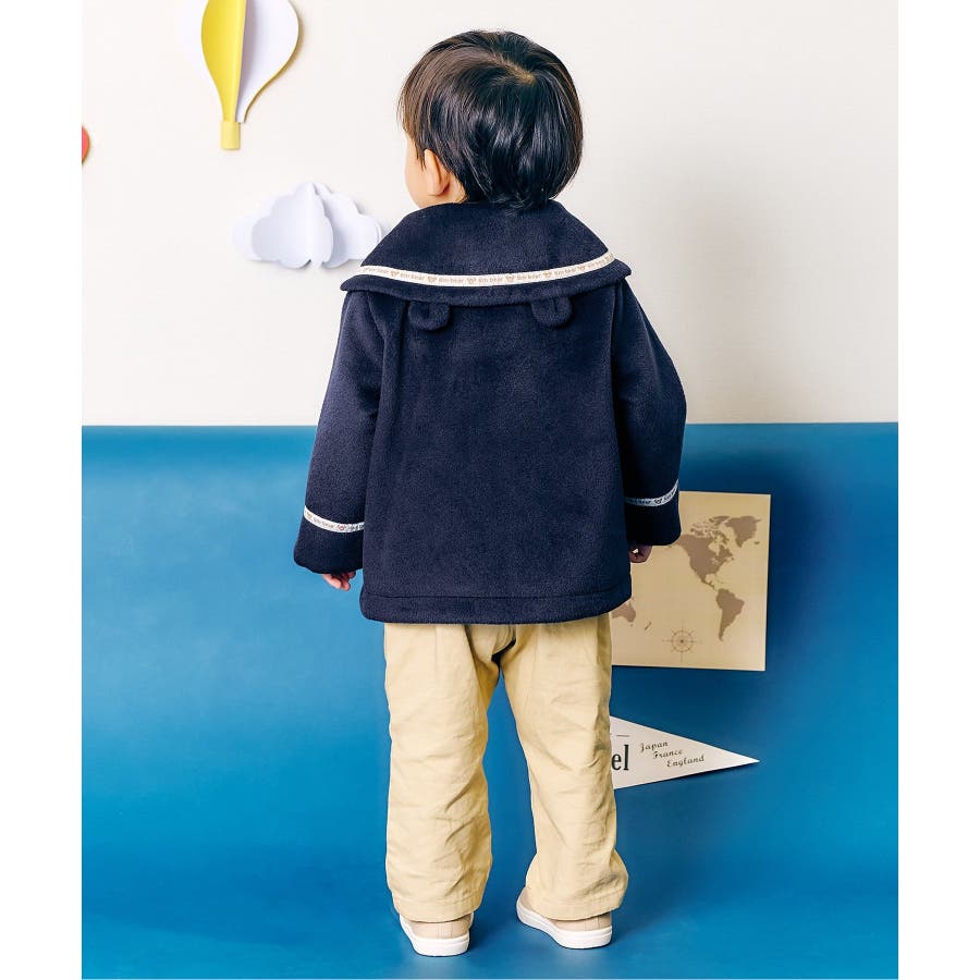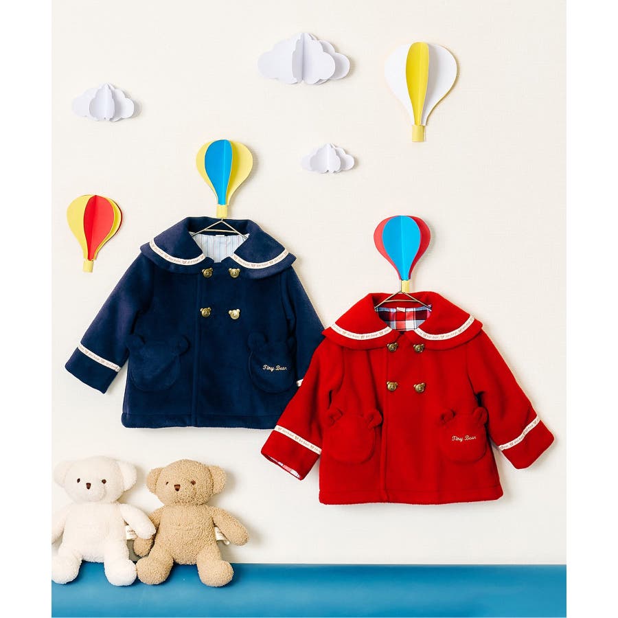 くま耳がポイントのセーラーカラーのアウターは秋冬のコーディネートにぴったり!ボタンやポケットがtiny bearになってたり、衿や袖にはtiny bearデザインのテープがついていたり、こだわりのデザインに♪