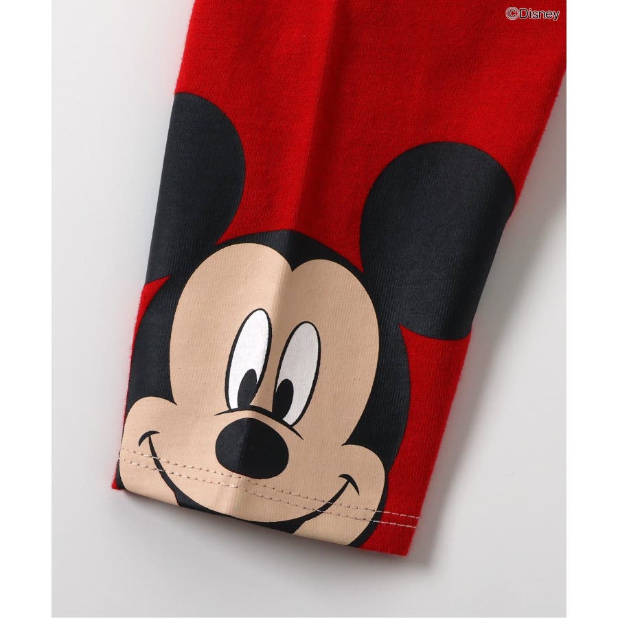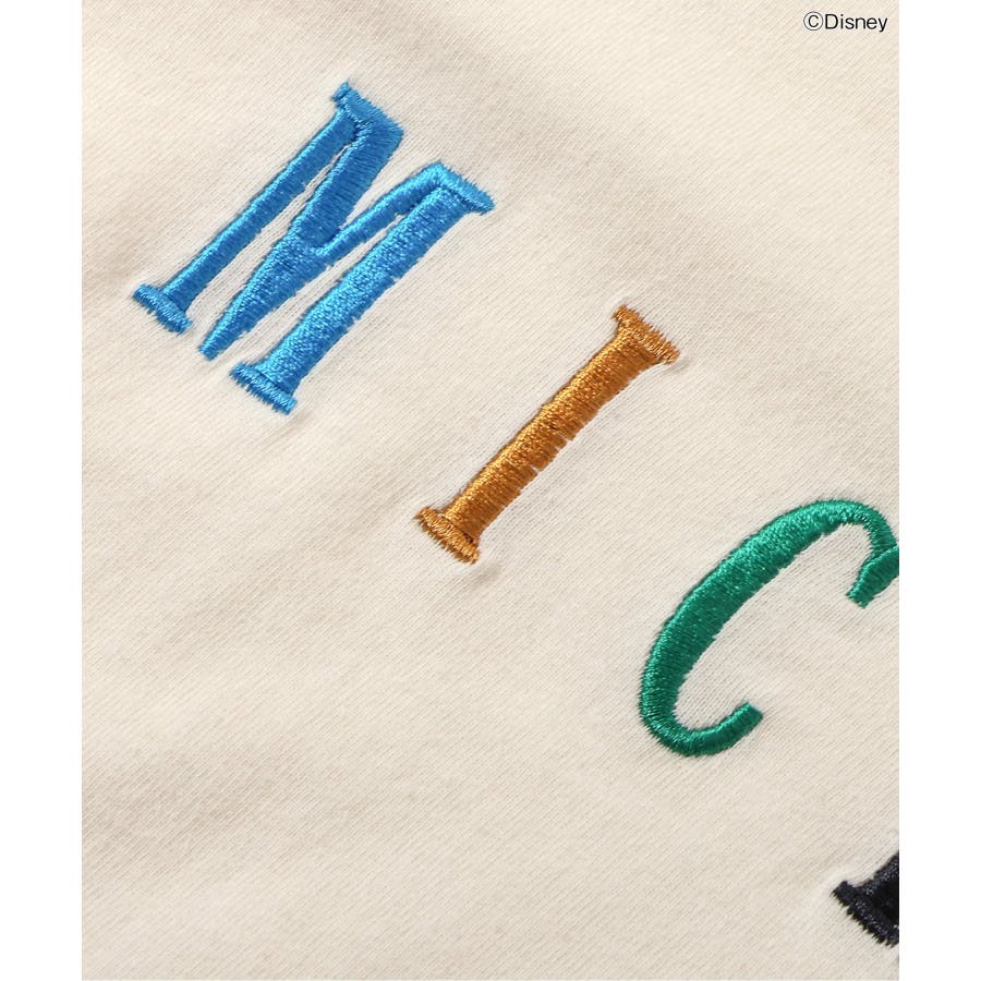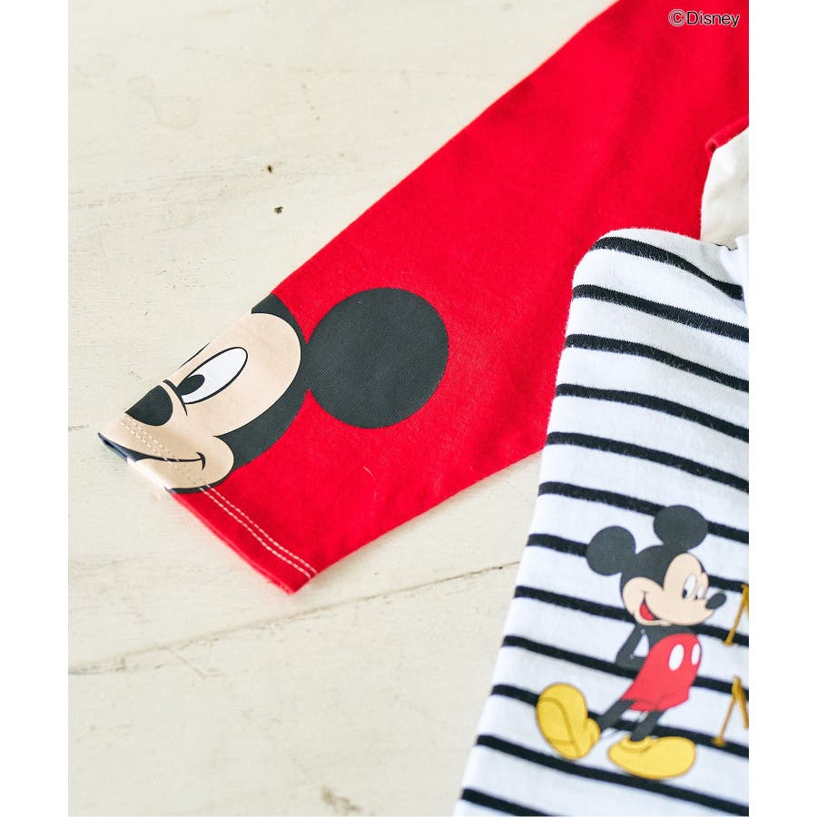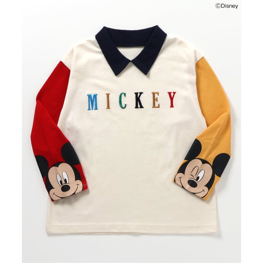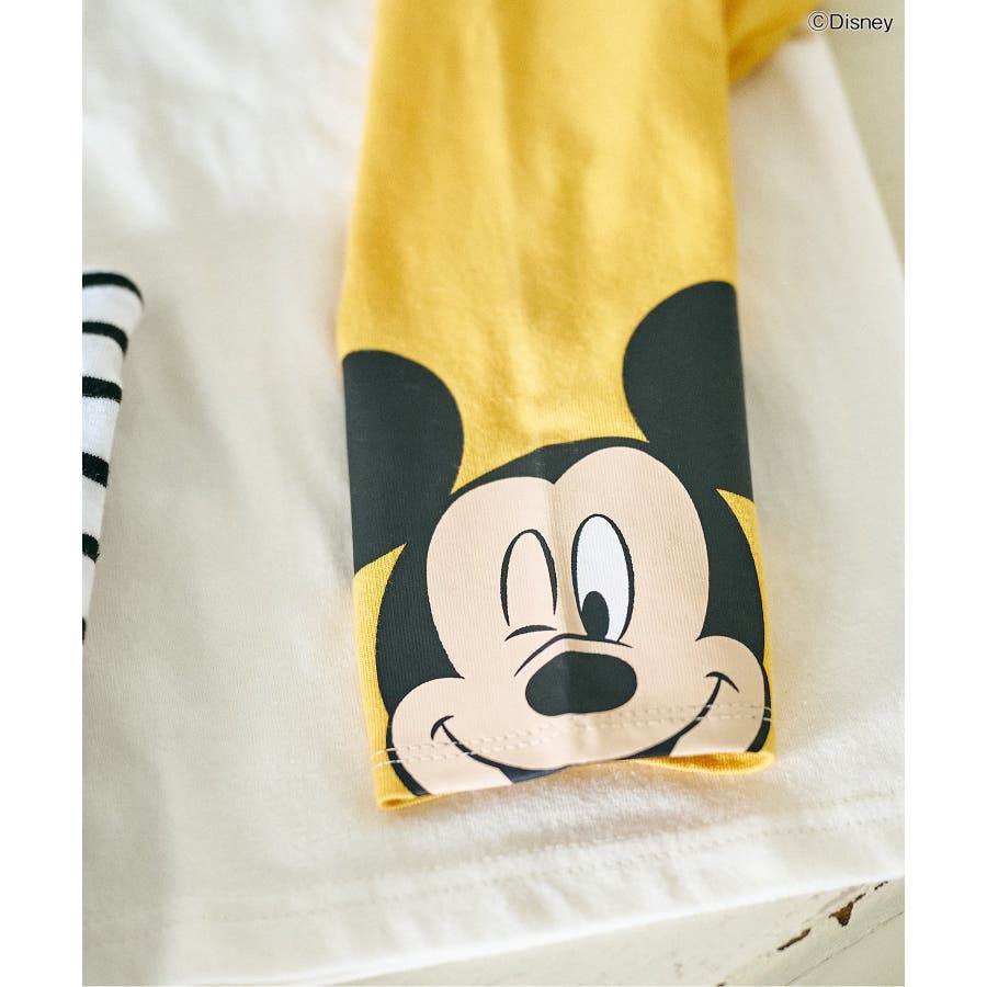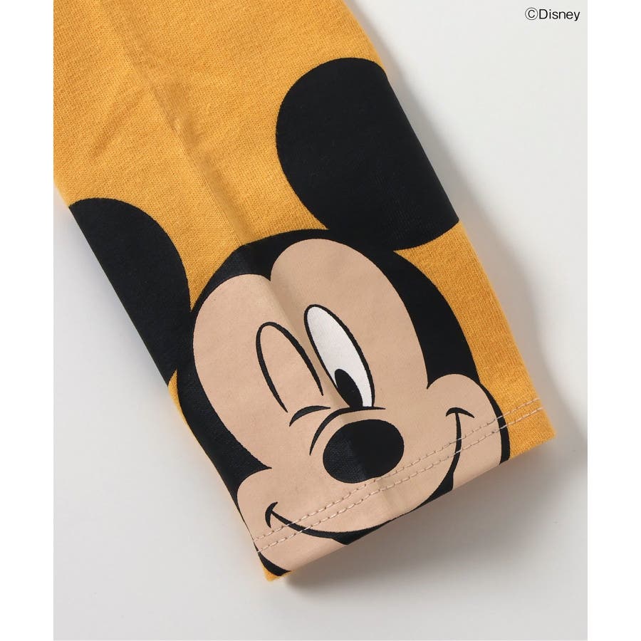 袖に大きなミッキーがプリントされたシンプルながらユニークなデザインのレインボーと