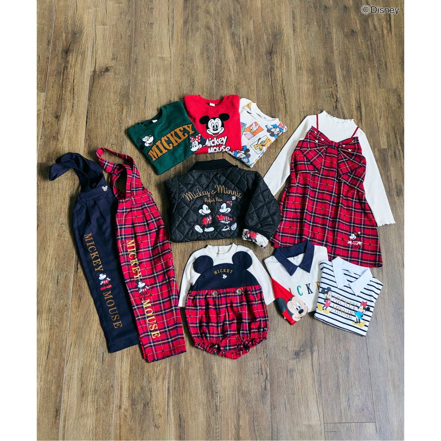 ミッキーとミニーがプリントされたボーダーデザインの2色展開。
