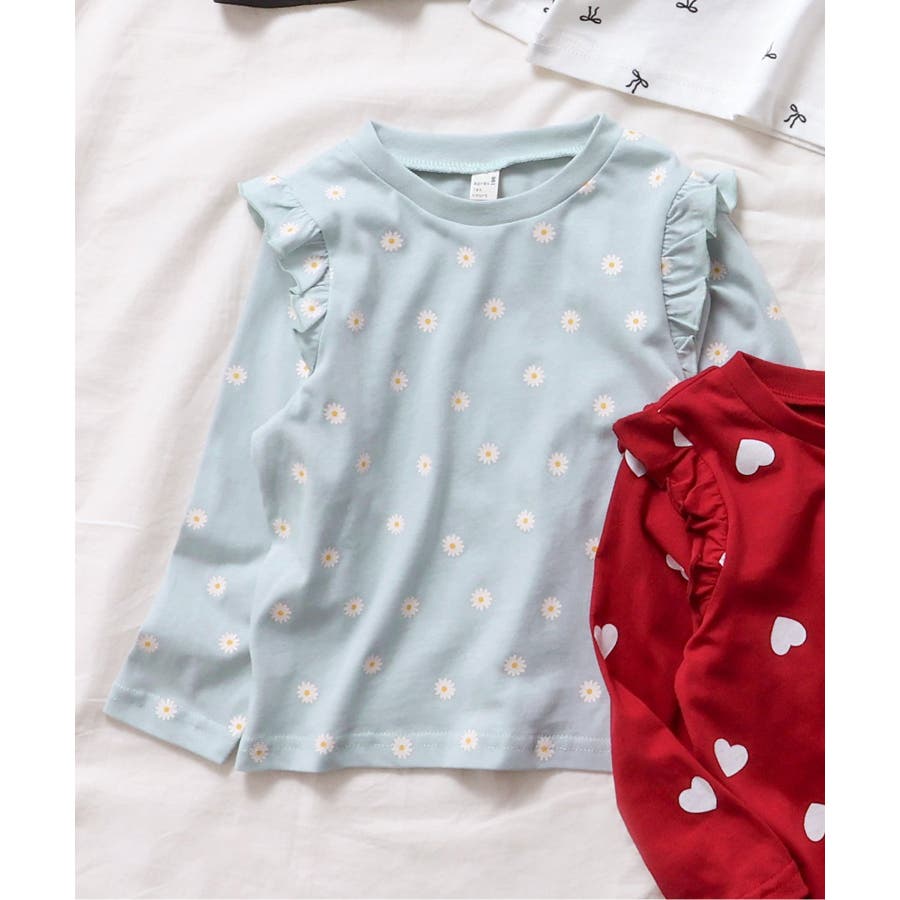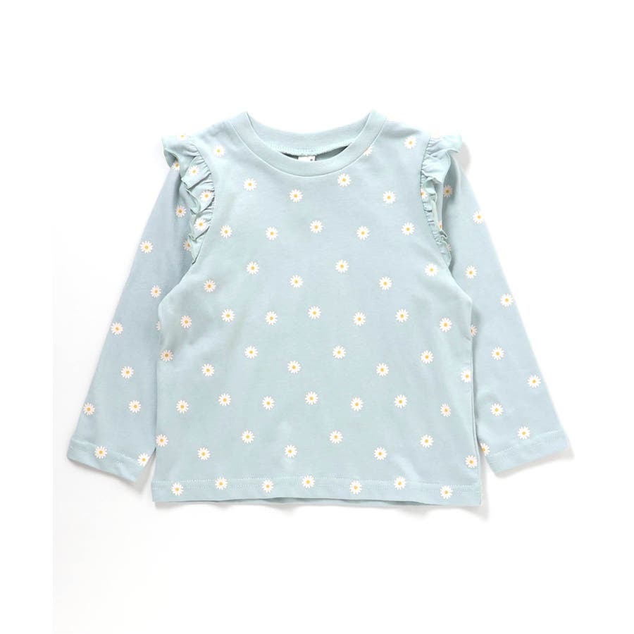 ミントに花柄デザインで可愛くて肩のフリルも女の子らしく一枚で決まる可愛らしいです。色も淡い色で合わせやすく着やすいです。