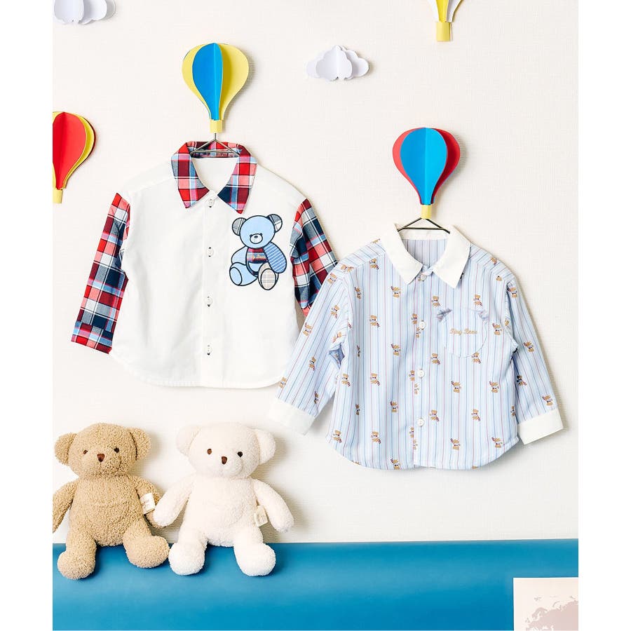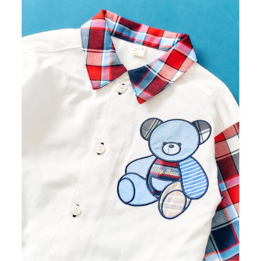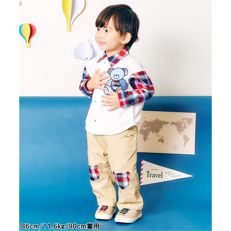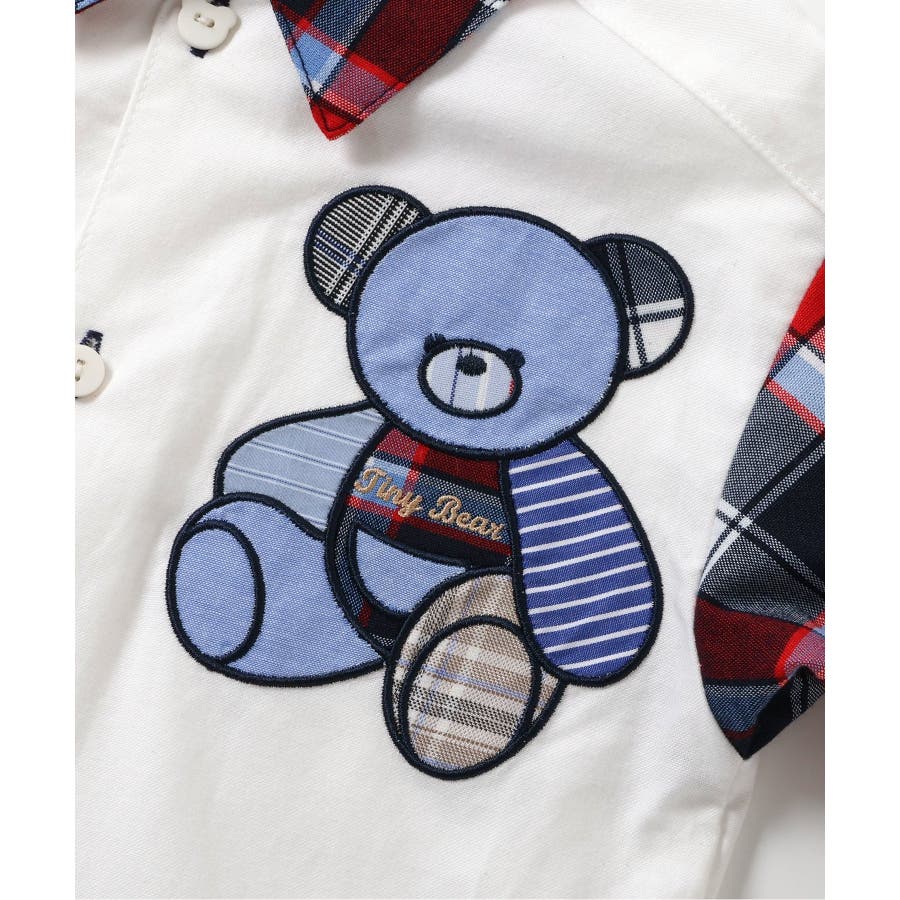 胸元にパッチワークの大きなタイニーベアがデザインされているチェック柄の2色展開。