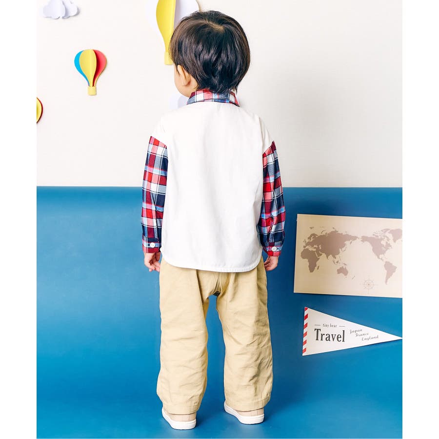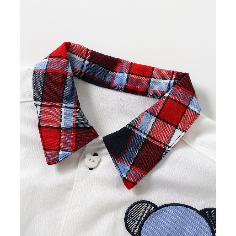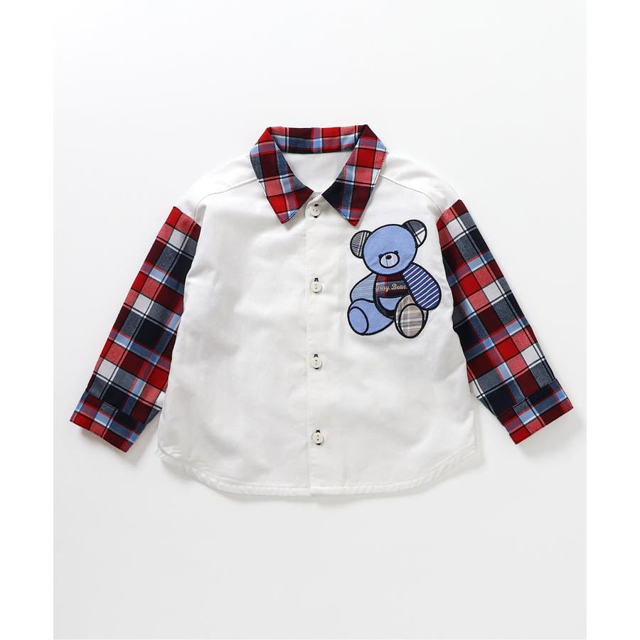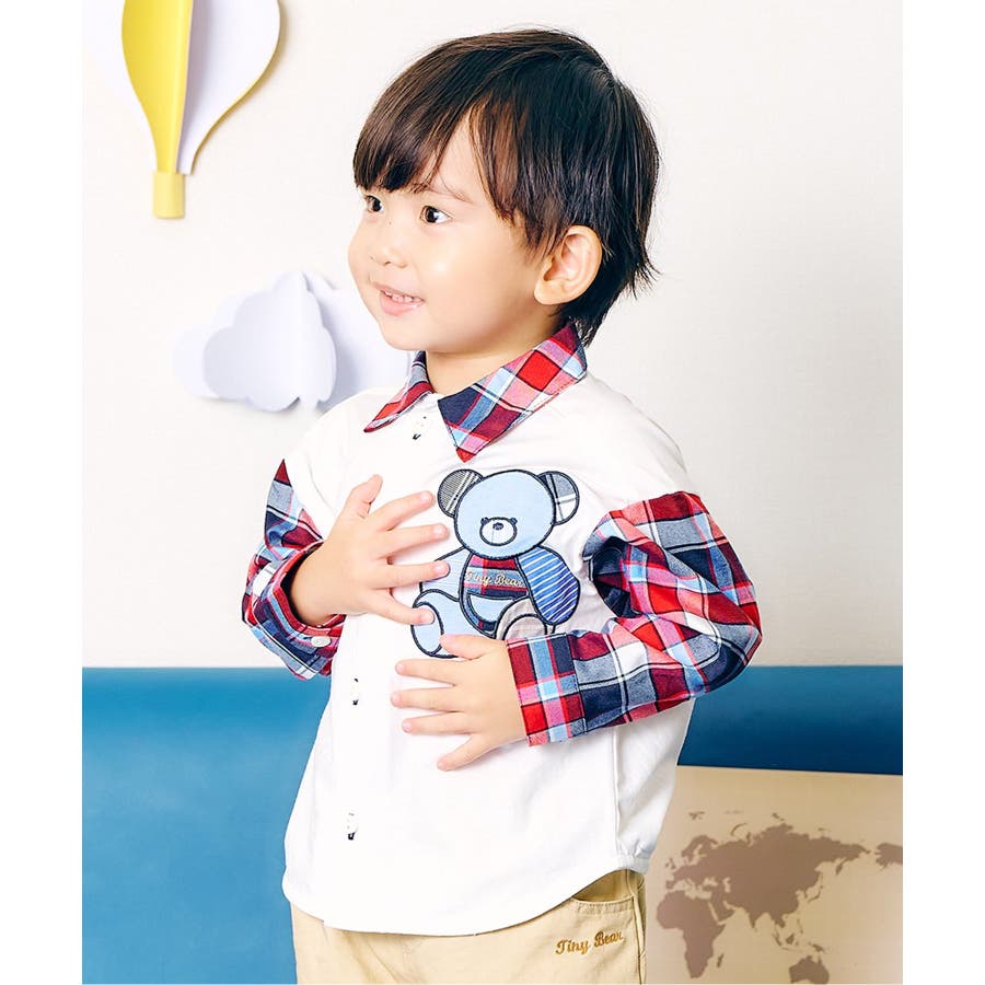 胸元にパッチワークの大きなタイニーベアがデザインされているチェック柄の2色展開。