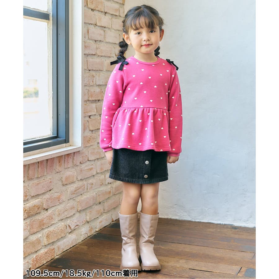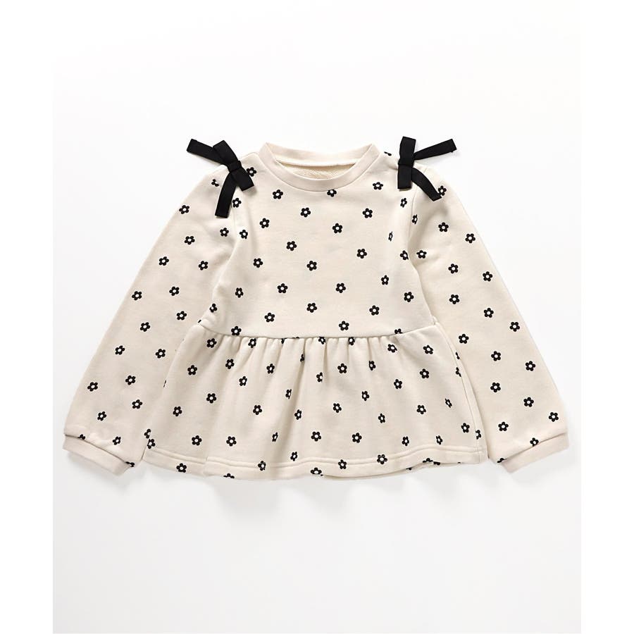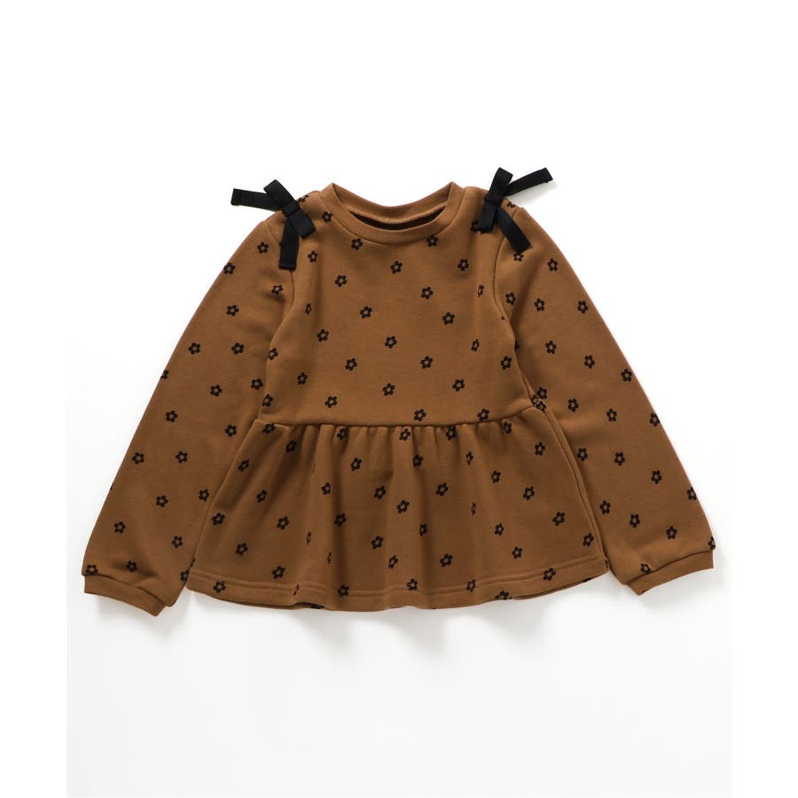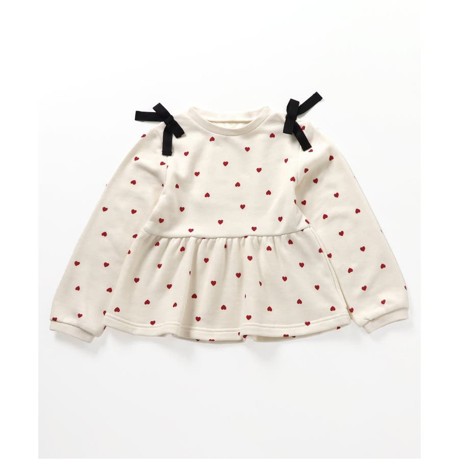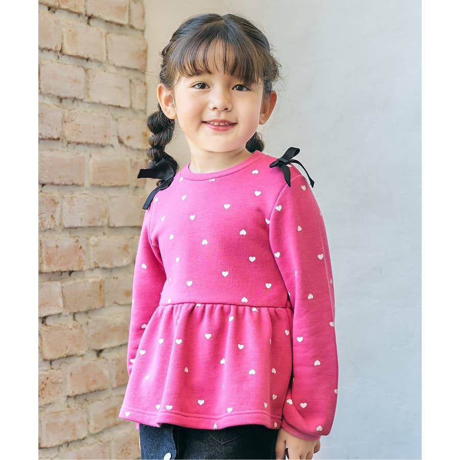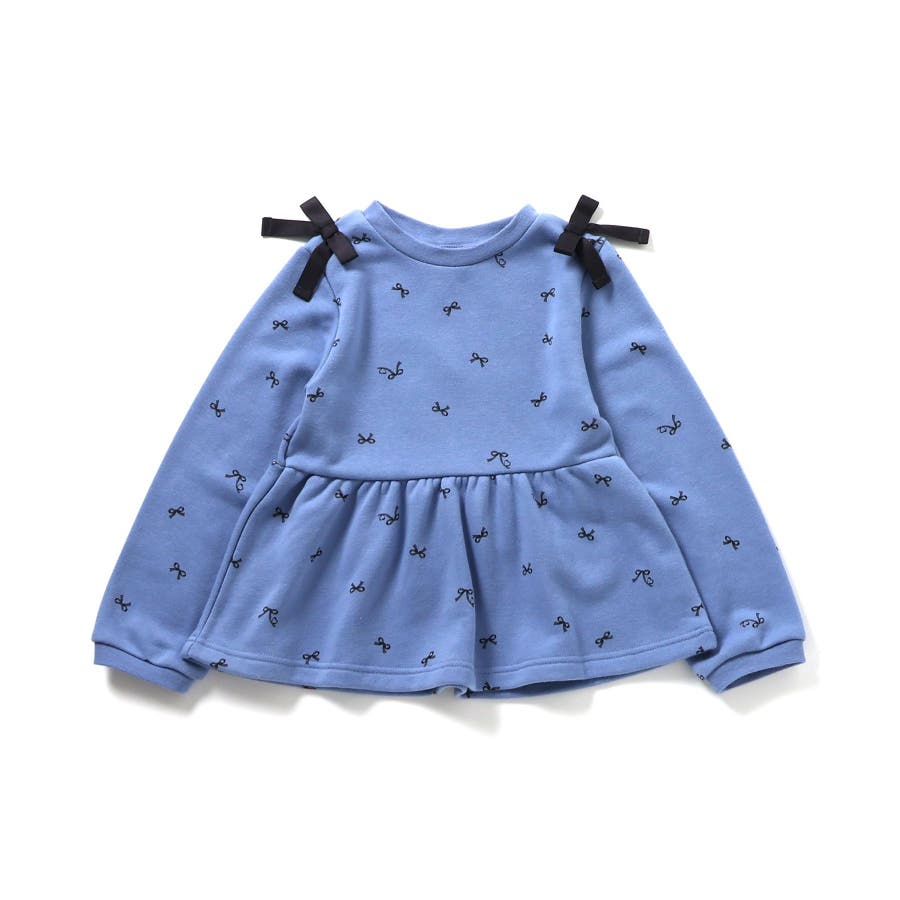 【ローズピンク】肩リボンペプラムトレーナー