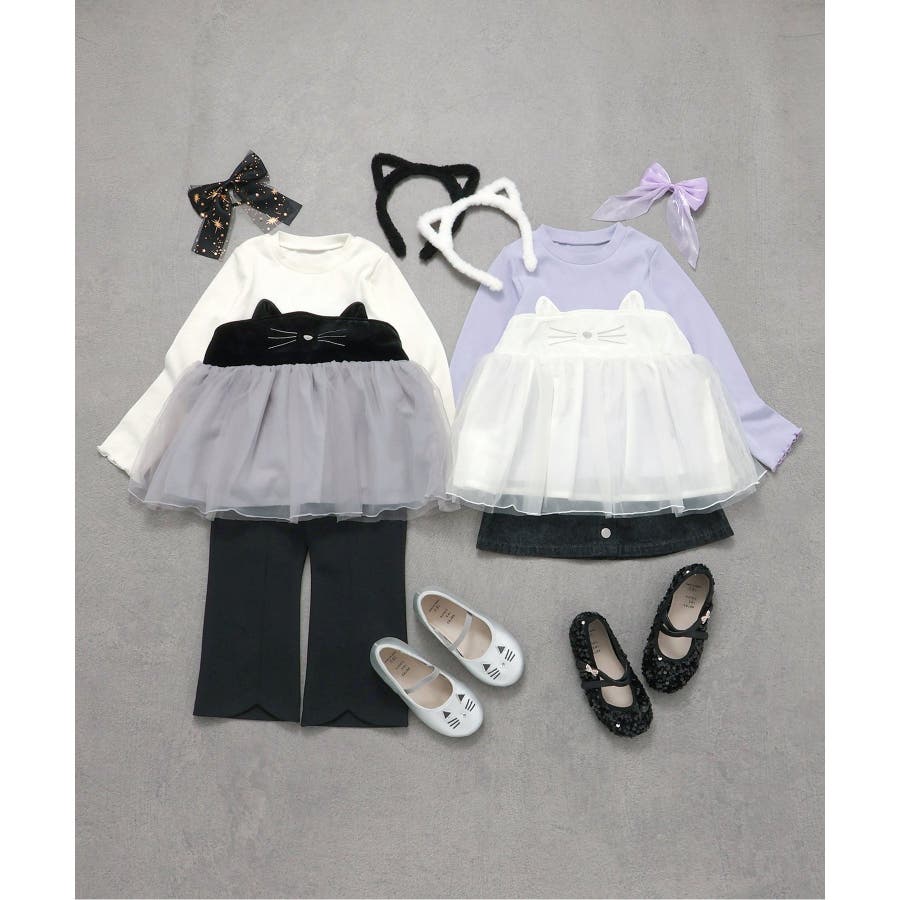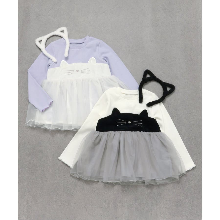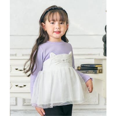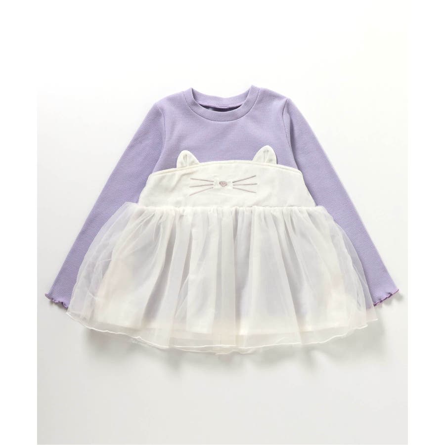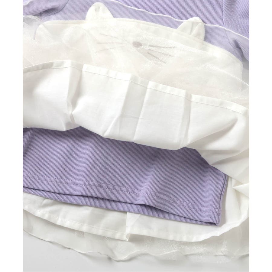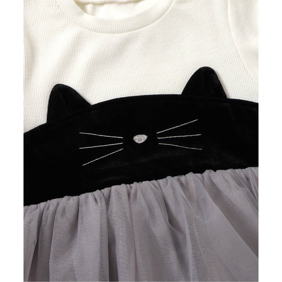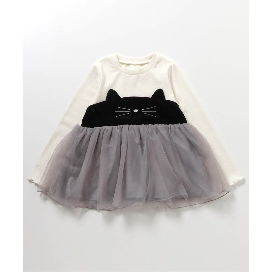 ネコモチーフチュールドッキングトップス