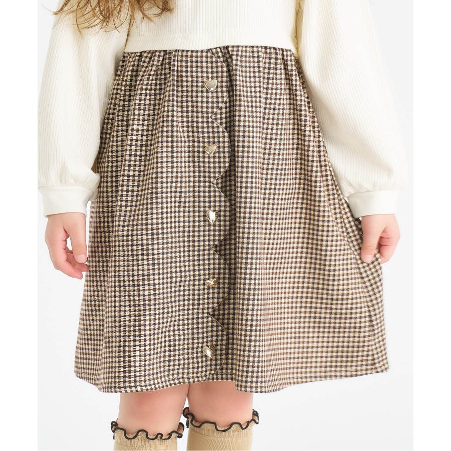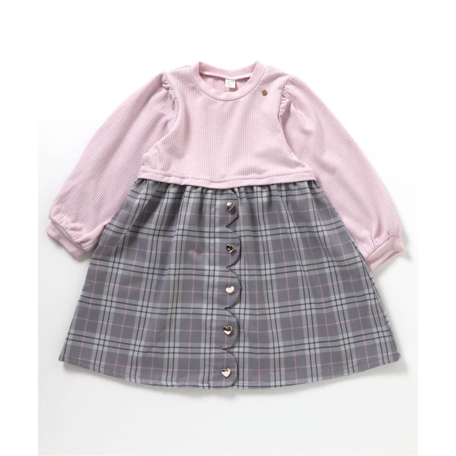 【ピンク】ハートボタンスカラップドッキングワンピース