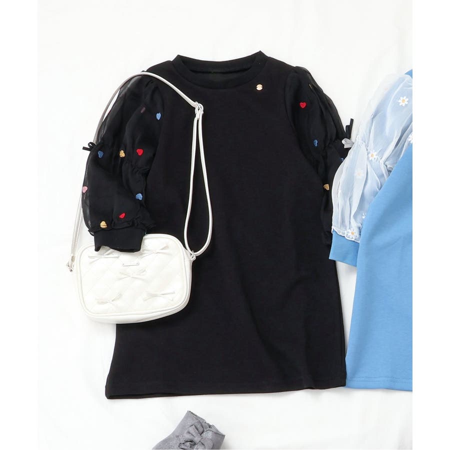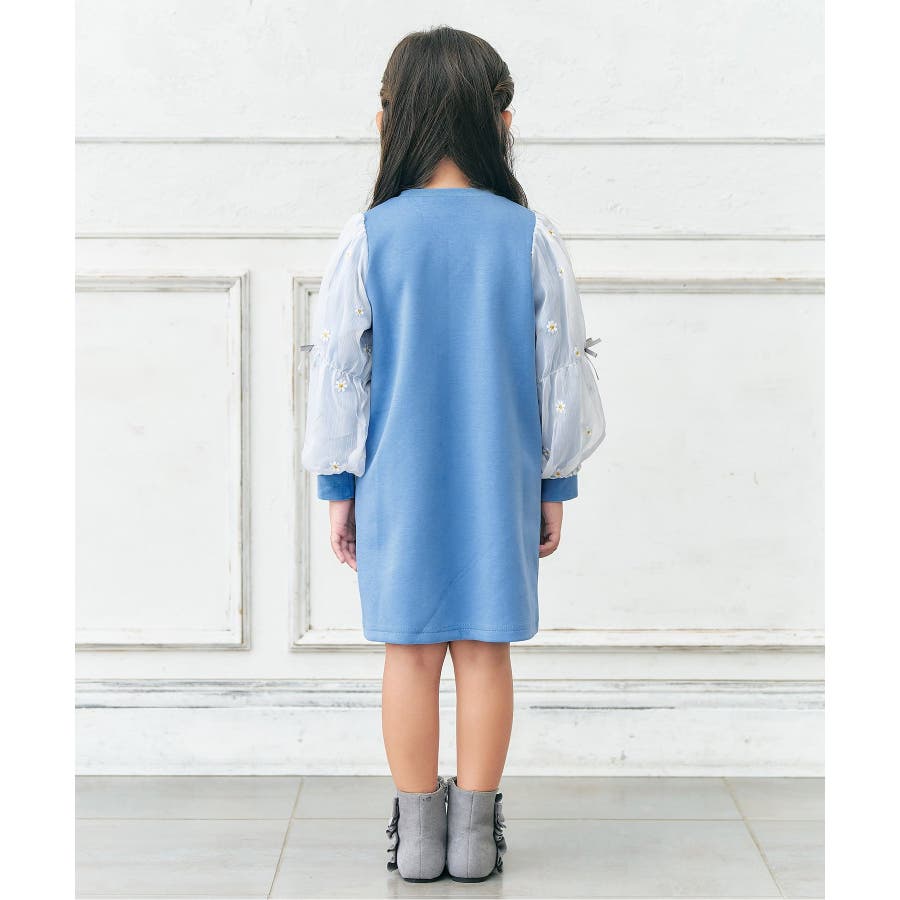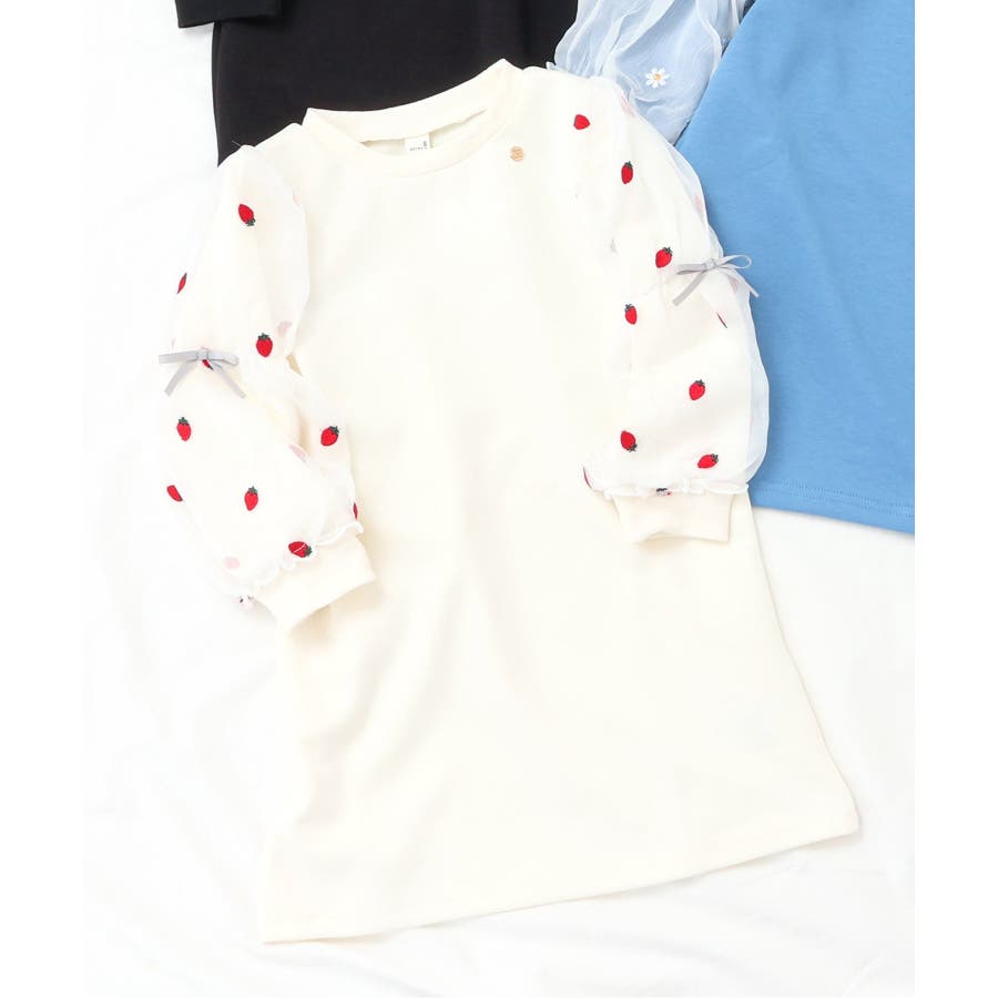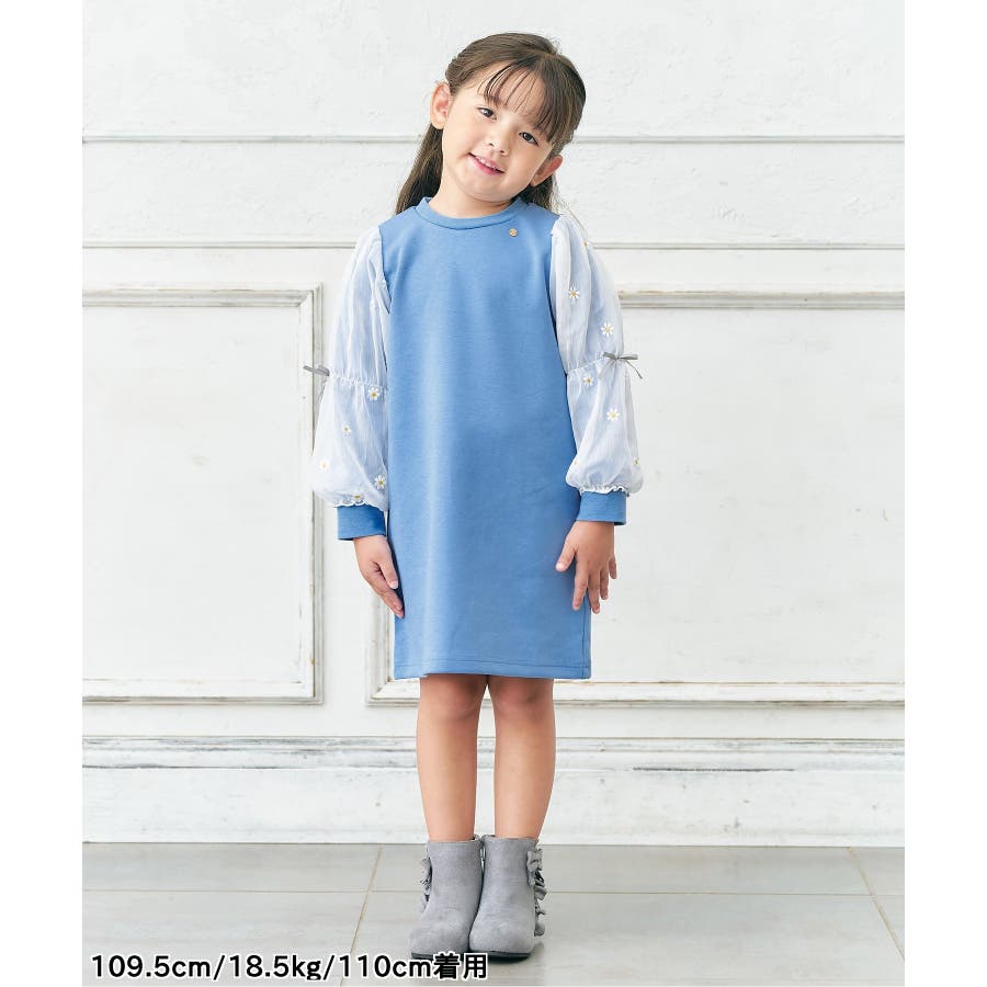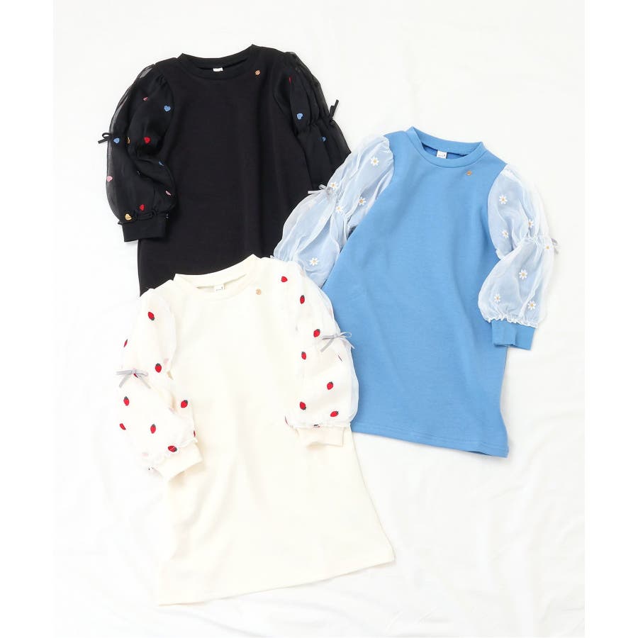3柄刺繍チュールスリーブワンピース