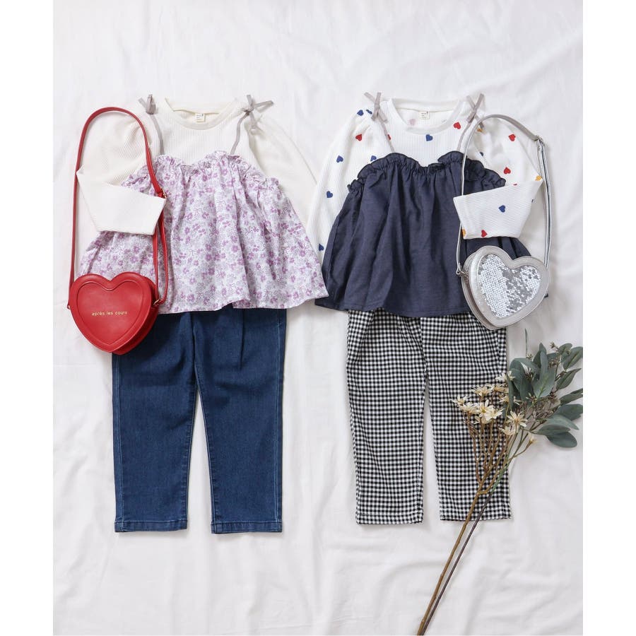 ウェストのハート型ボタンや、フリルデザインが「きゅん」ポイント。