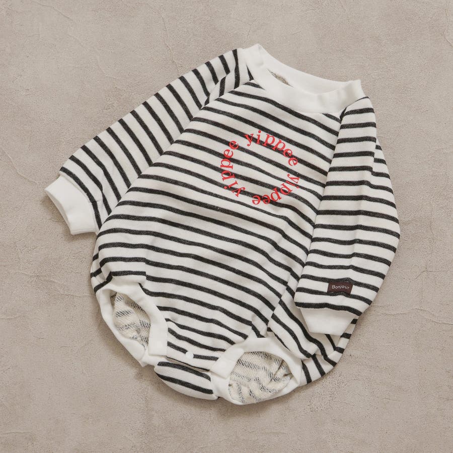 【ボーダー柄】WEB限定 ラグランスリーブボディースーツ