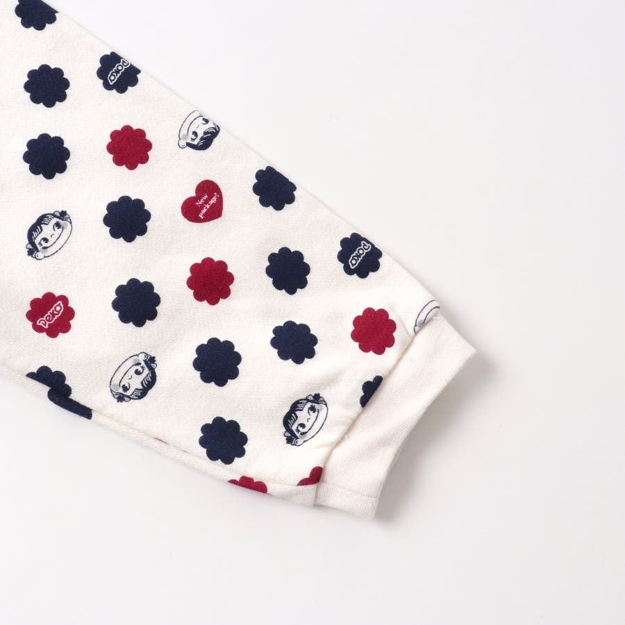 120:身丈46 身幅38 肩幅34 袖丈39.5 袖口幅7.5 ウエスト幅24 前股上26 股下(10分丈)40 足口幅10 腰幅37.8