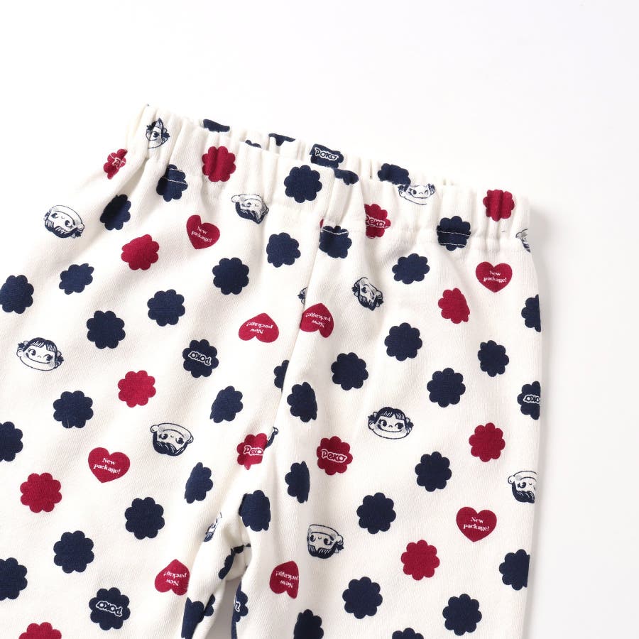 100:身丈40 身幅35 肩幅31 袖丈31 袖口幅7.5 ウエスト幅22 前股上24 股下(10分丈)29 足口幅9 腰幅34.5