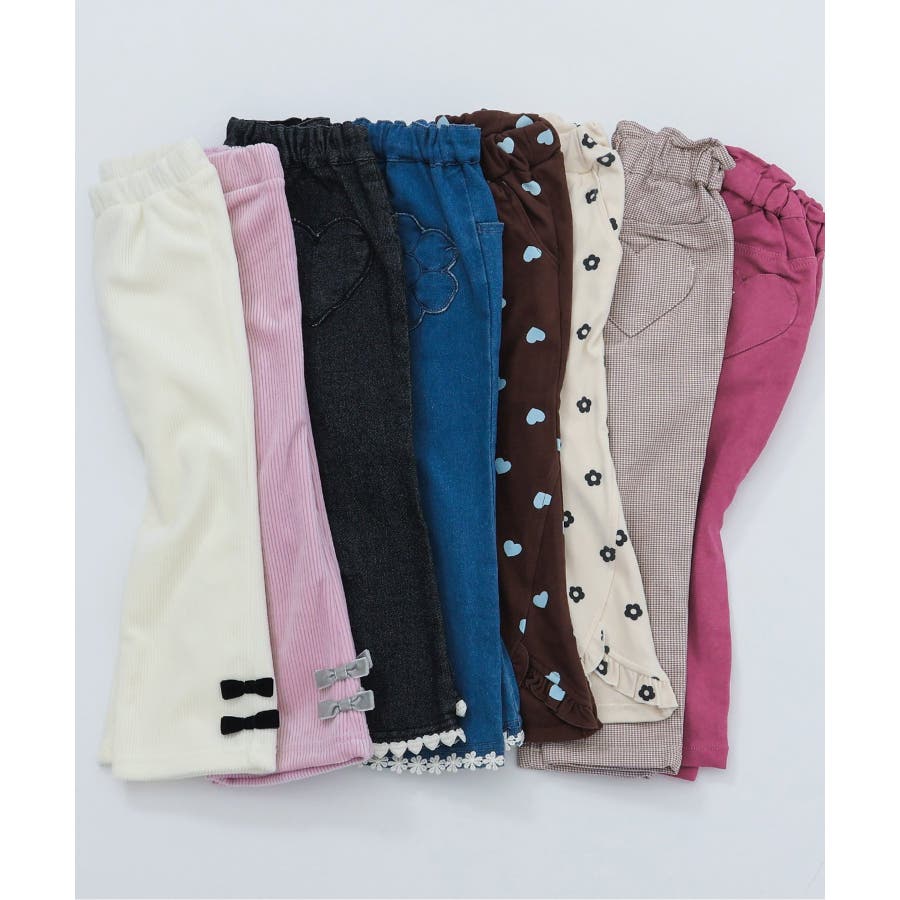 V521915 【フレア/あったか】裏起毛ハート・お花ポケットフレアきゅんパンツ