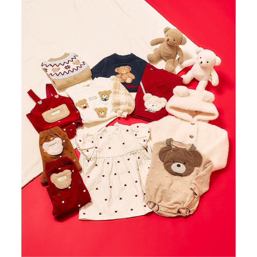 ぽこぽこしたタイニーベア柄のキルトはトレーナーとおそろいコーデが楽しめます。