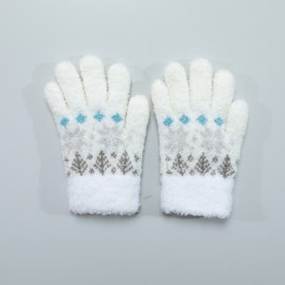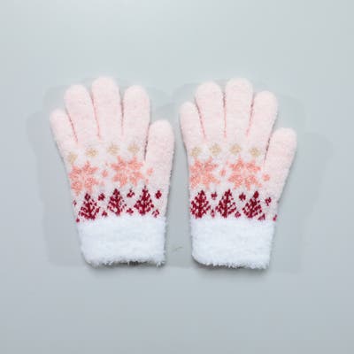 ふわふわモコモコあったかキッズ手袋 スノー&ツリー柄 <子供