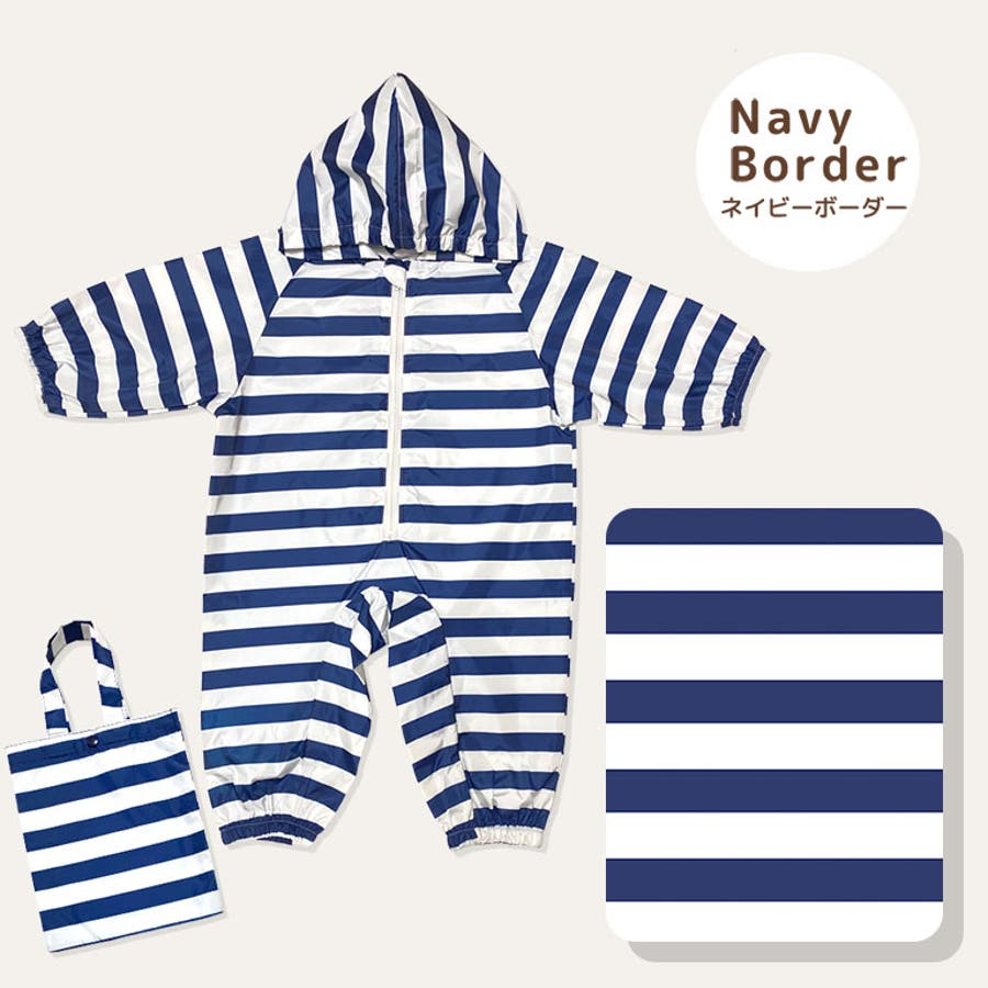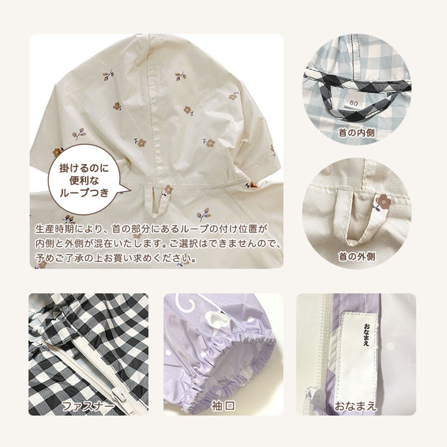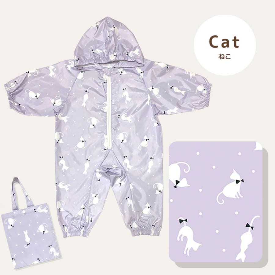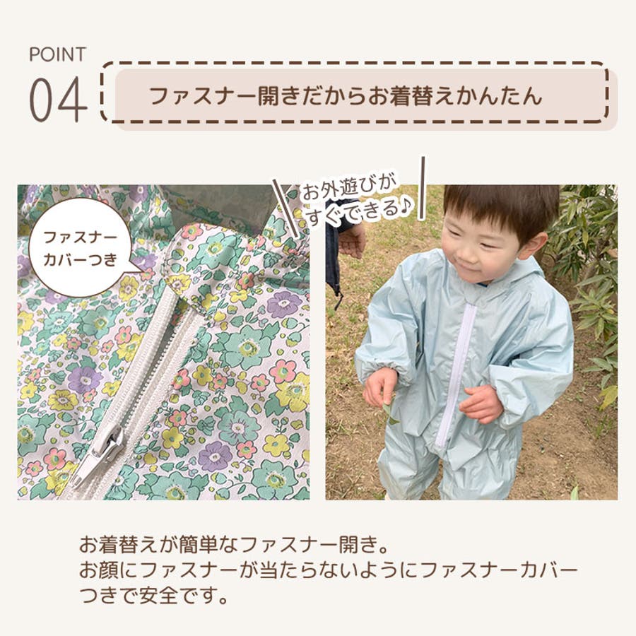 服の汚れを気にせずおもいっきり遊べる!かわいい柄のレインロンパースです♪
