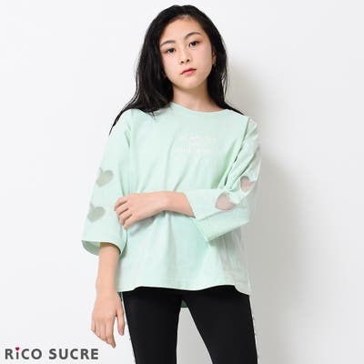 オーガンジーハート七分袖Tシャツ トップス ロンT