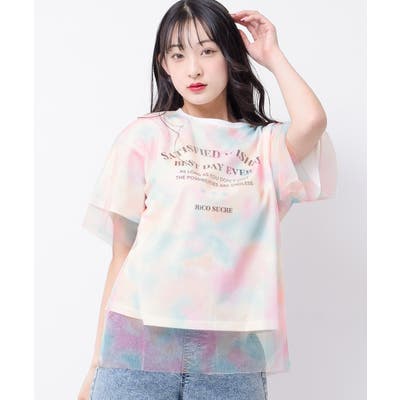 チュール重ねタイダイTシャツ トップス 半袖