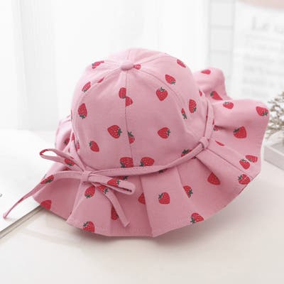 ゴムのあご紐付きで風が強い日やアクティブなシーンでも脱げにくく安心!