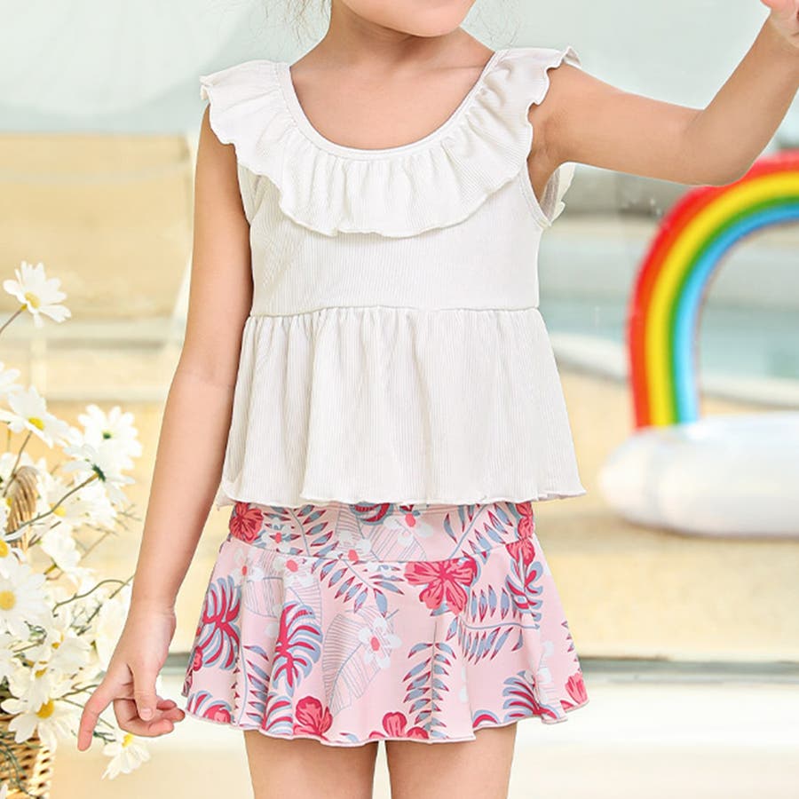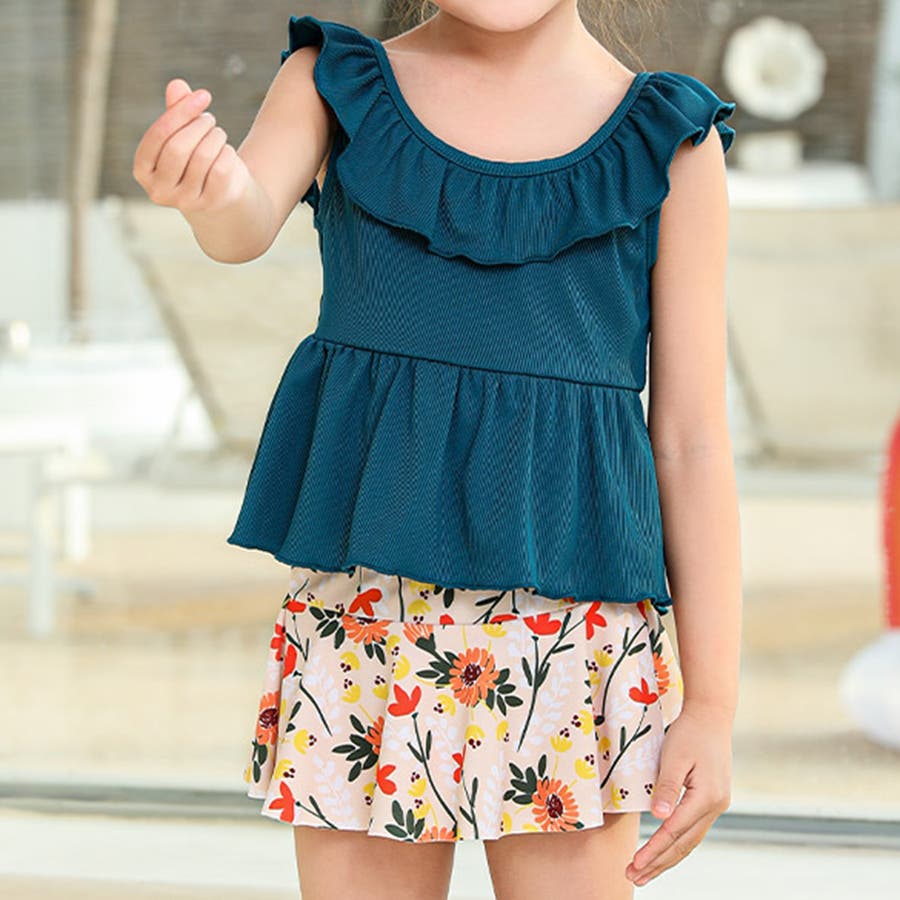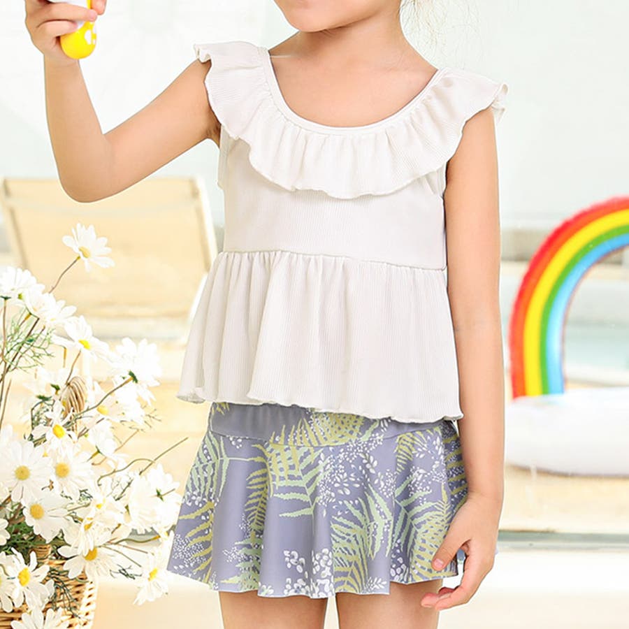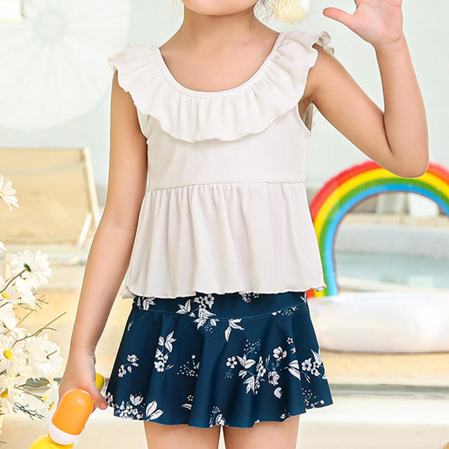 娘好みの可愛らしい水着で、お気に入りです。トップスの形がおしゃれで、上にラッシュガードを羽織るのがもったいない。夏休みのプールにたくさんきます。
