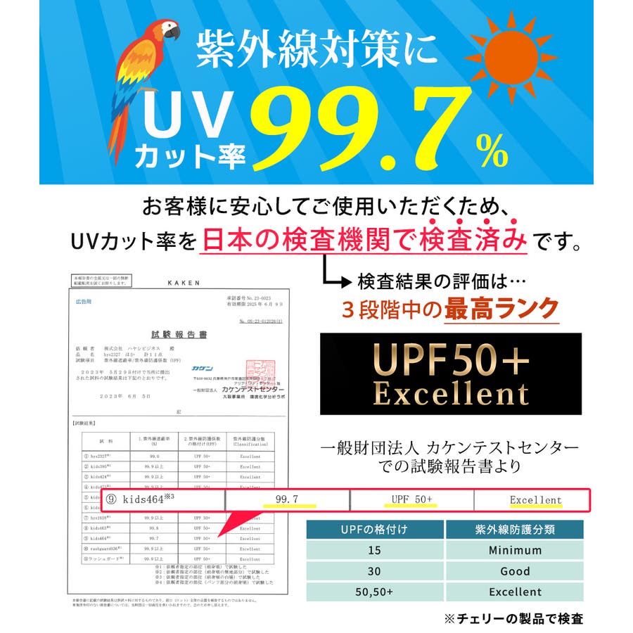 紫外線遮蔽率・UPFを日本の試験機関にて検査済みです。