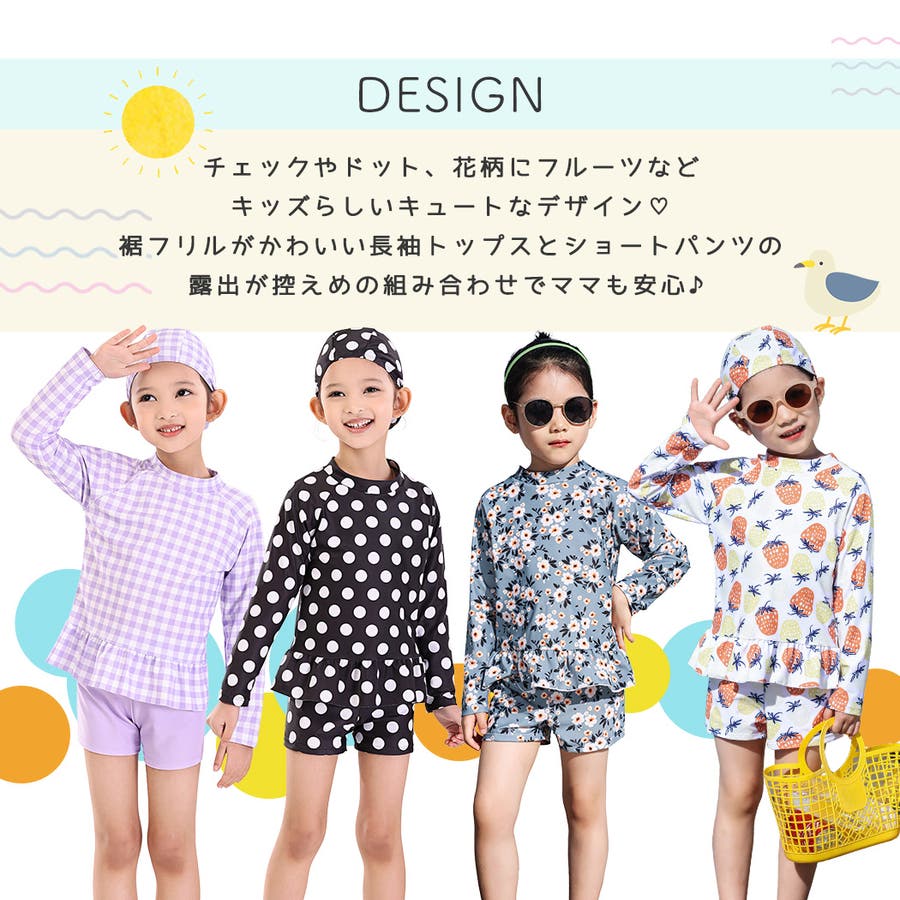 チェックやドット、花柄にフルーツなどキッズらしいキュートなデザイン
