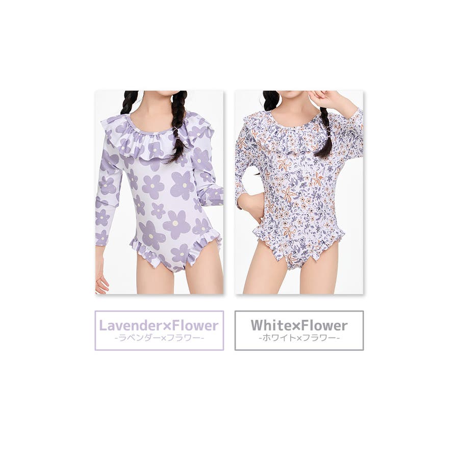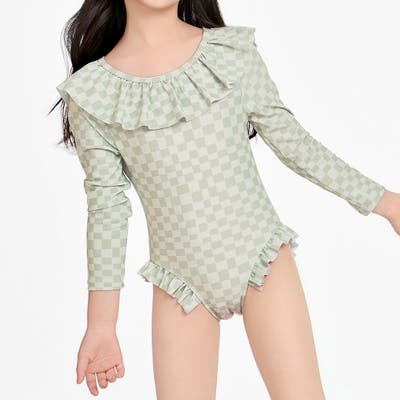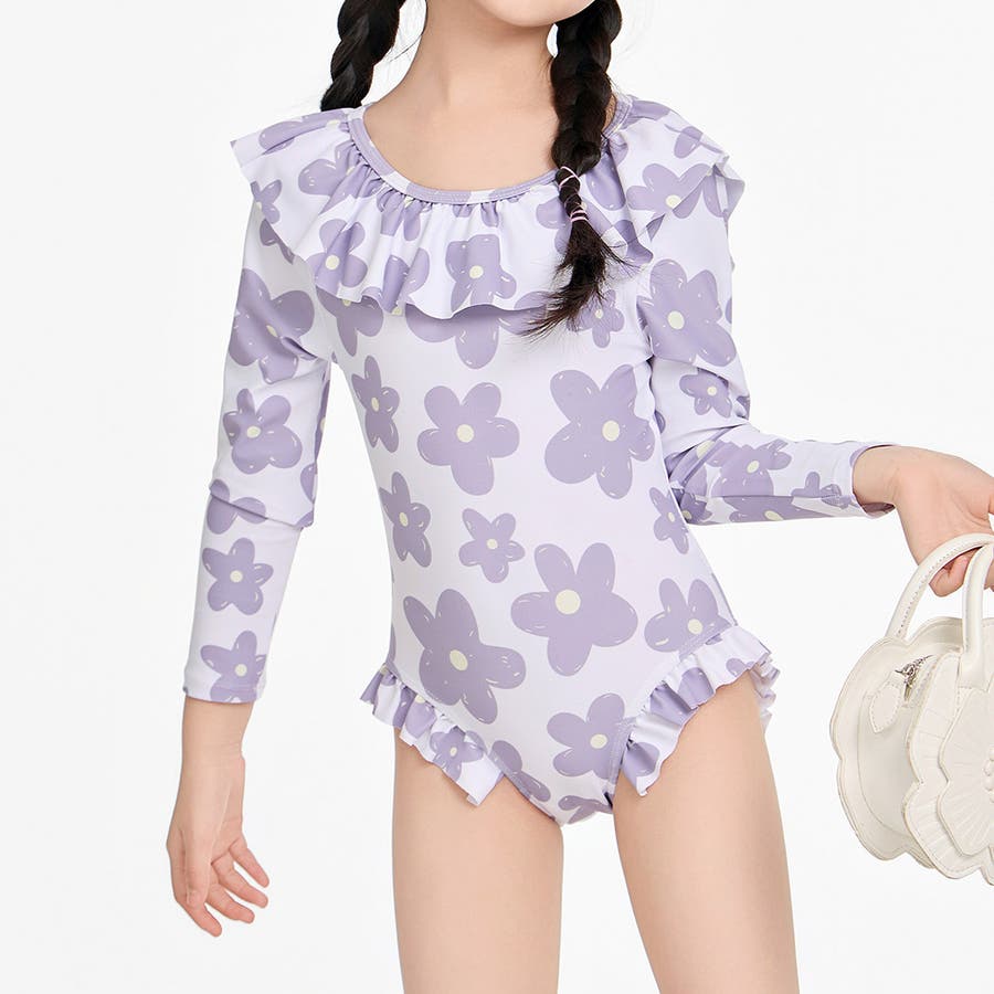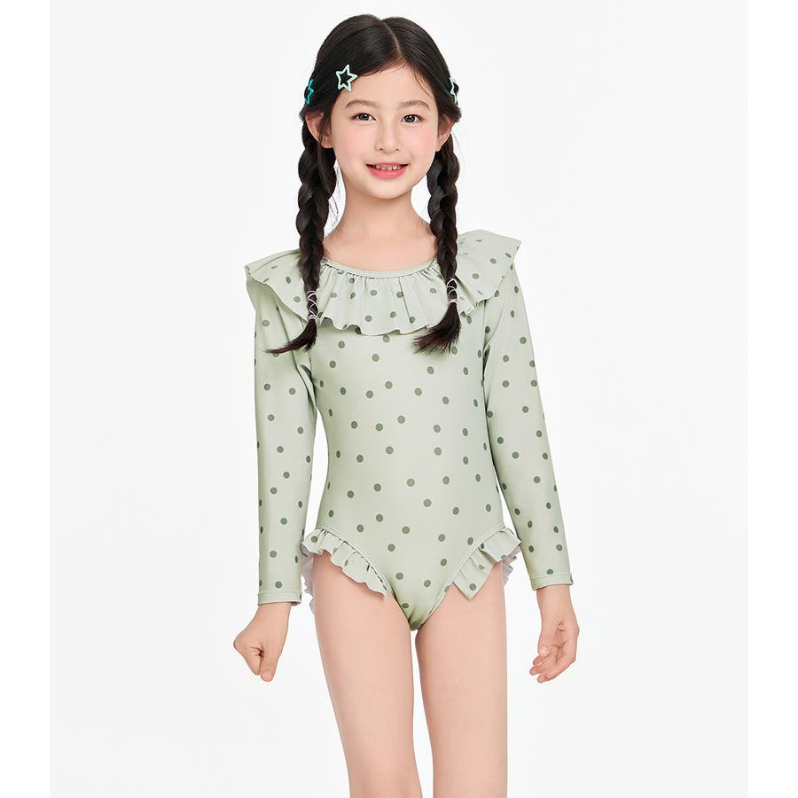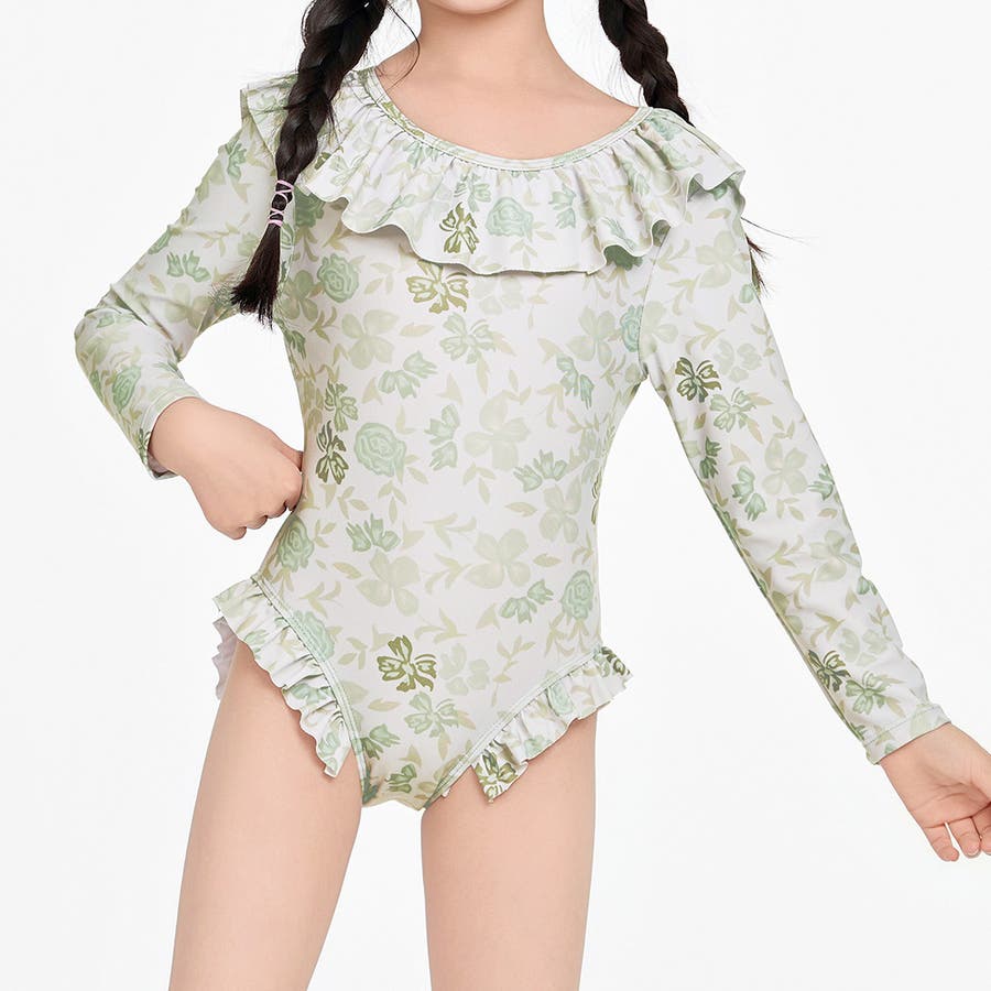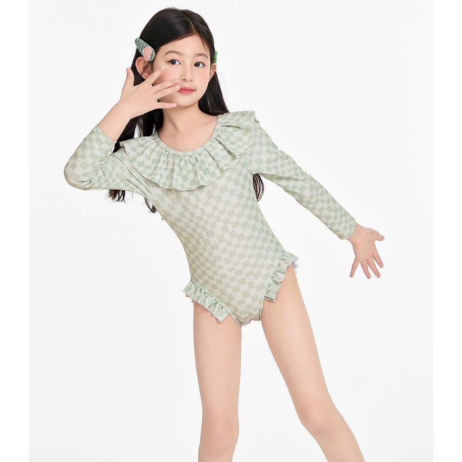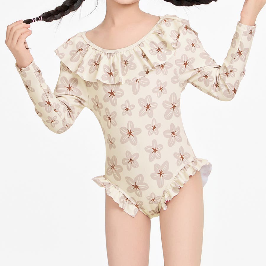 「フリルがかわいい長袖ワンピース水着」