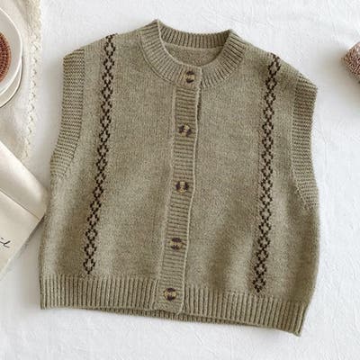 シンプル過ぎず、フロント両サイドにはアクセントとなるライン入りでお洒落にキマるニットベスト。
