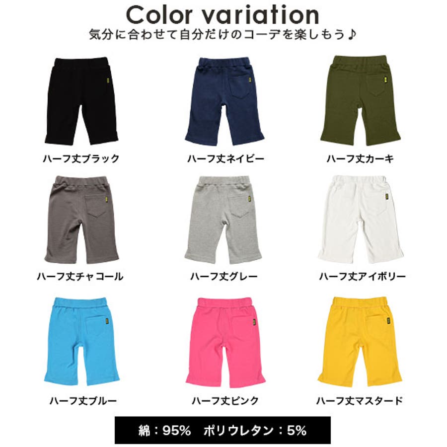 色 | ハーフ丈ブラック / ハーフ丈チャコール / ハーフ丈グレー / ハーフ丈ネイビー / ハーフ丈ブルー / ハーフ丈ピンク / ハーフ丈マスタード / ハーフ丈アイボリー / ハーフ丈カーキ |