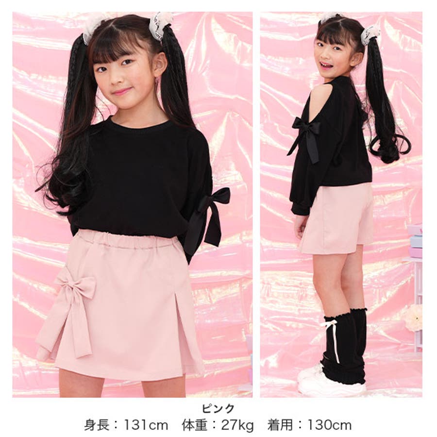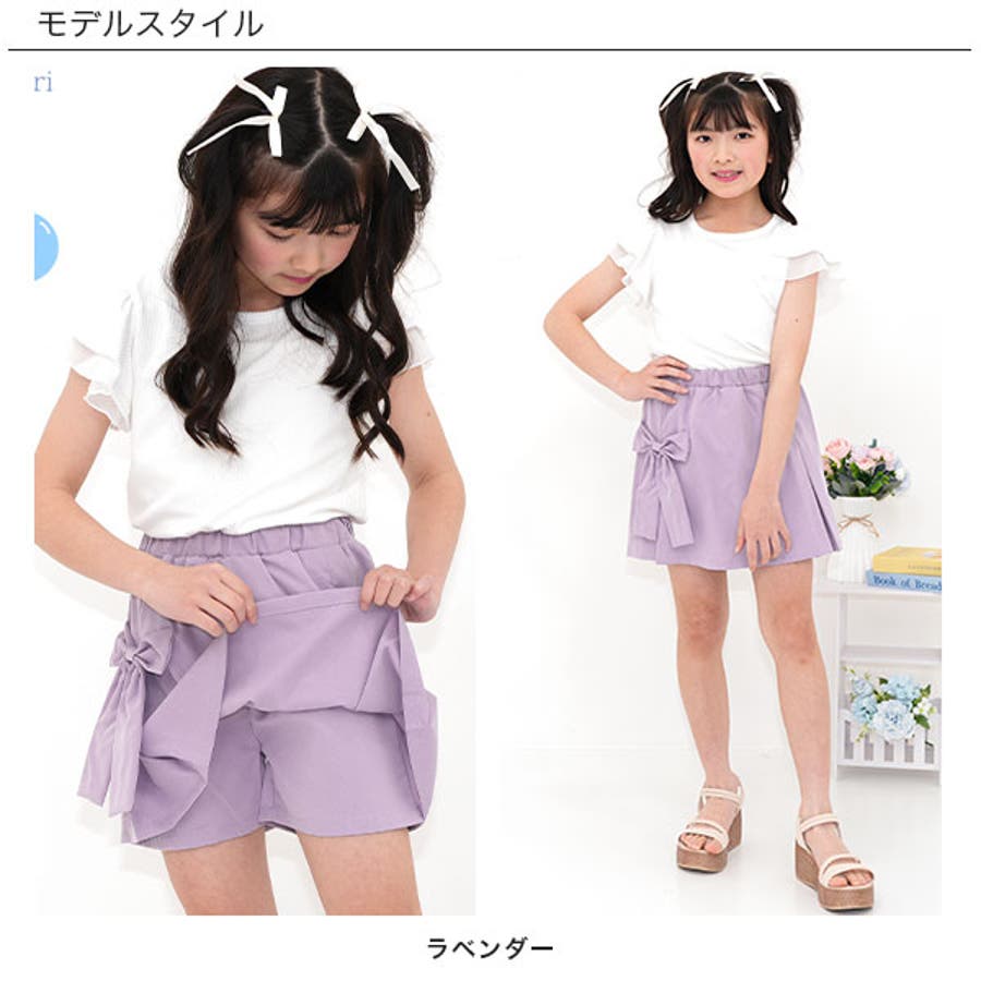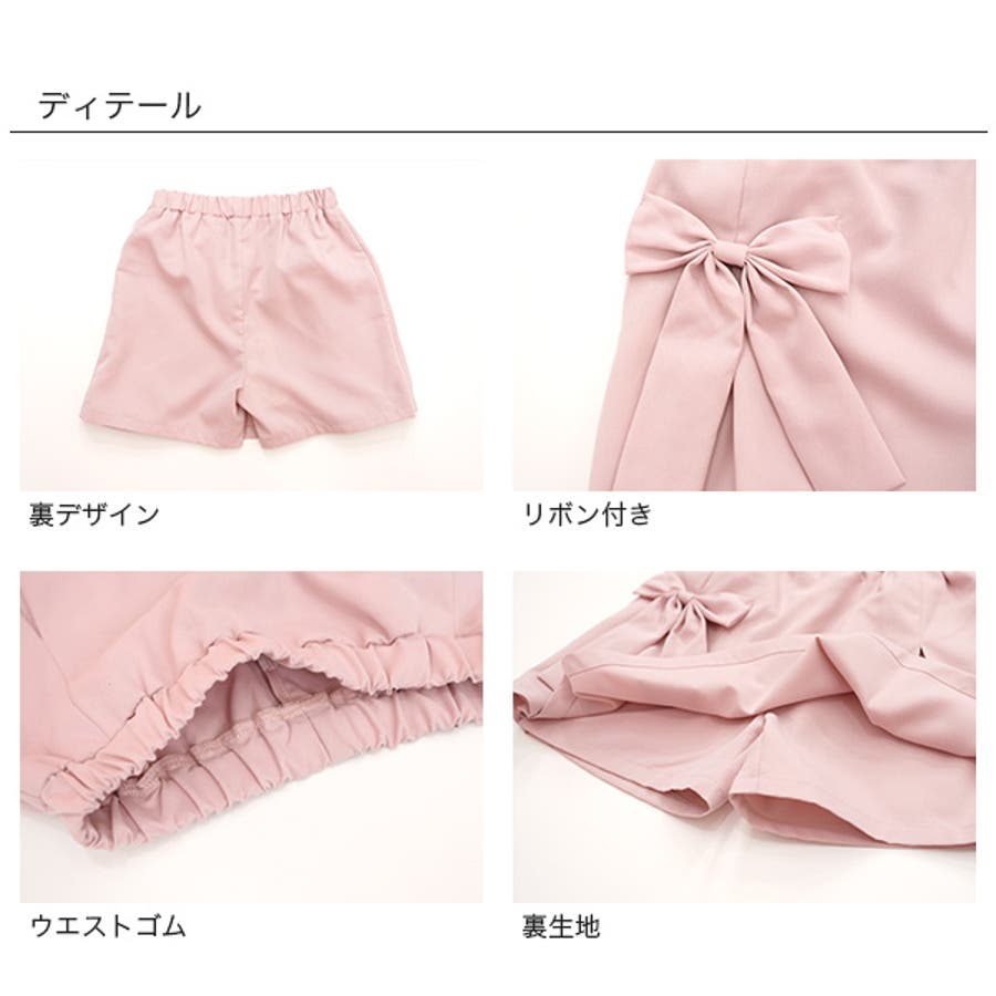 スカート風パンツ リボン ウエストゴム