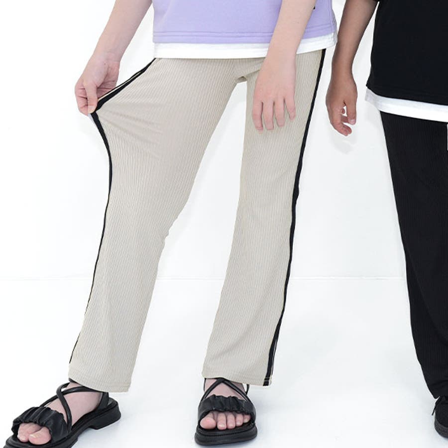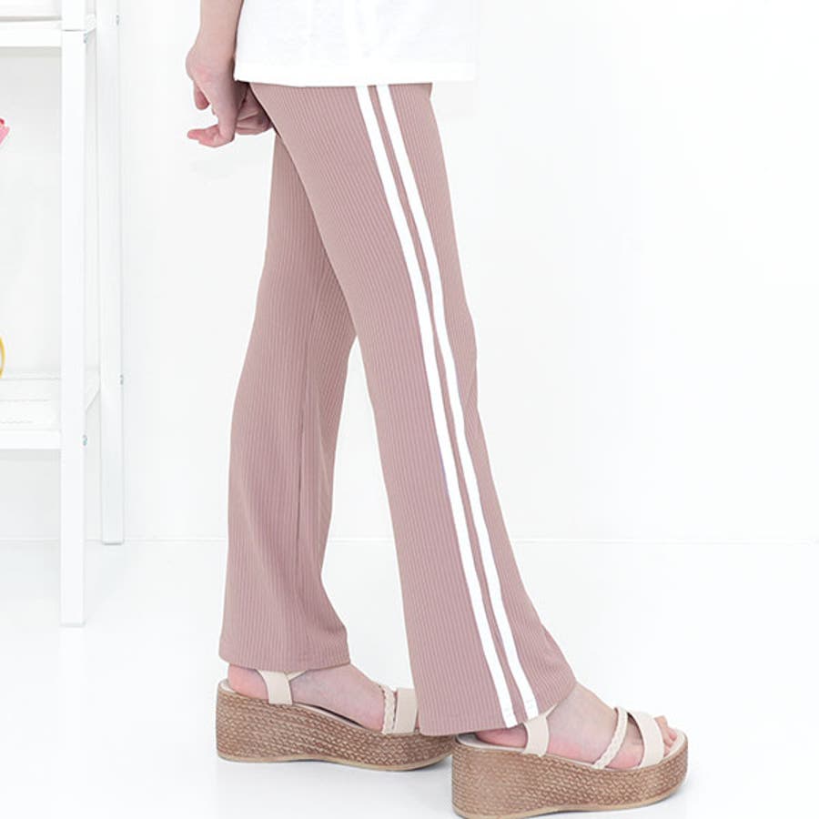 フレアパンツ リブ地 伸縮性