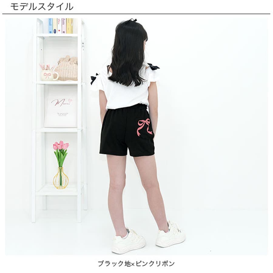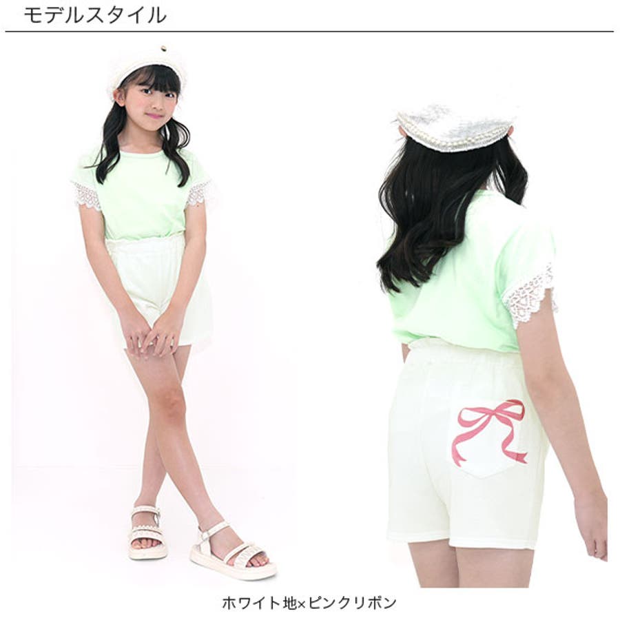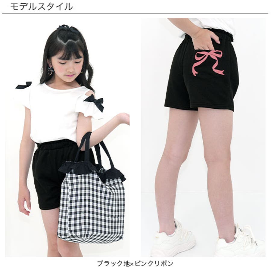 ショートパンツ ポケット リボンプリント