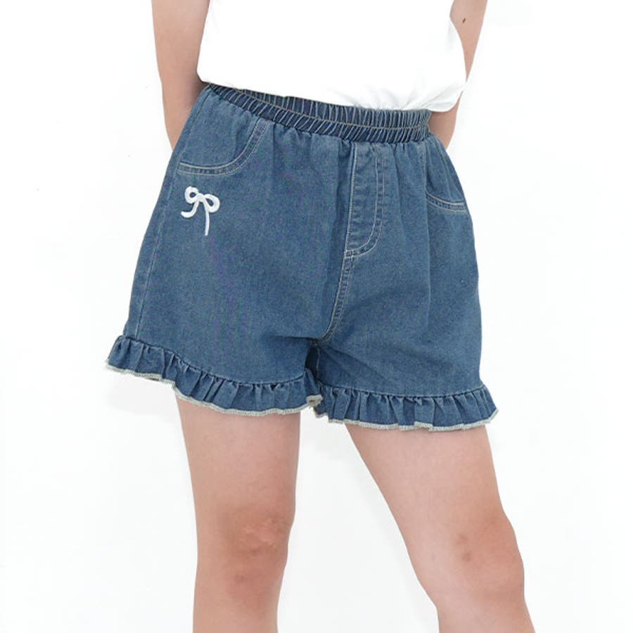 刺繍デザインのリボンがポイントで可愛いデニムパンツ★★