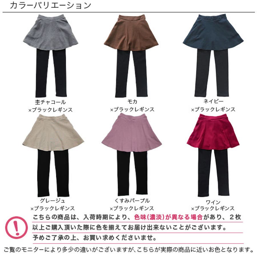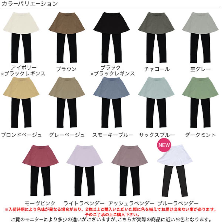 | 色 | ブラック×ブラックレギンス / 杢チャコール×ブラックレギンス / ネイビー×ブラックレギンス / ワイン×ブラックレギンス / モカ×ブラックレギンス / くすみパープル×ブラックレギンス / グレージュ×ブラックレギンス / アイボリー×ブラックレギンス / アッシュラベンダー / モーヴピンク / グレーベージュ / サックスブルー / ライトラベンダー / ダークミント / スモーキーブルー / 杢グレー / ブロンドベージュ / ブラウン×ブラックレギンス / ブルーラベンダー |