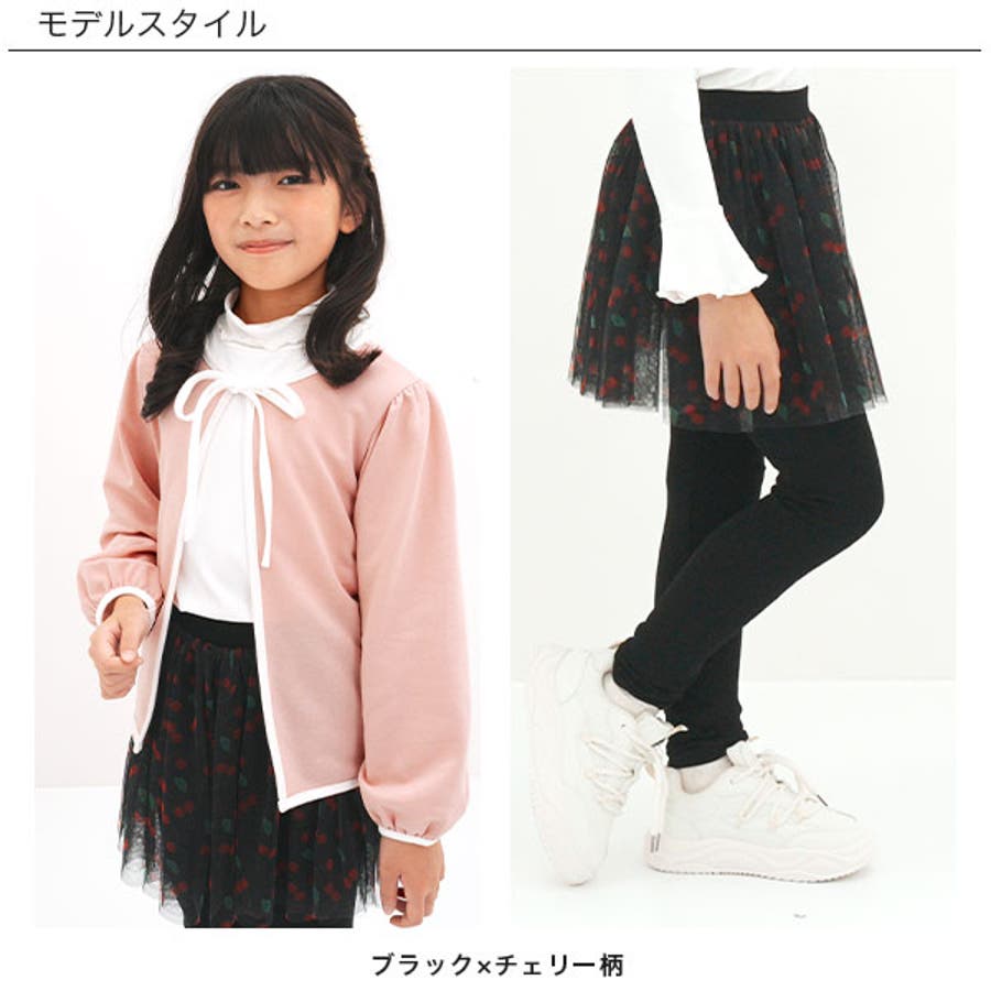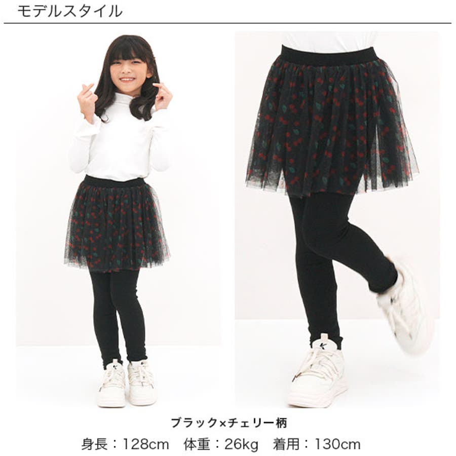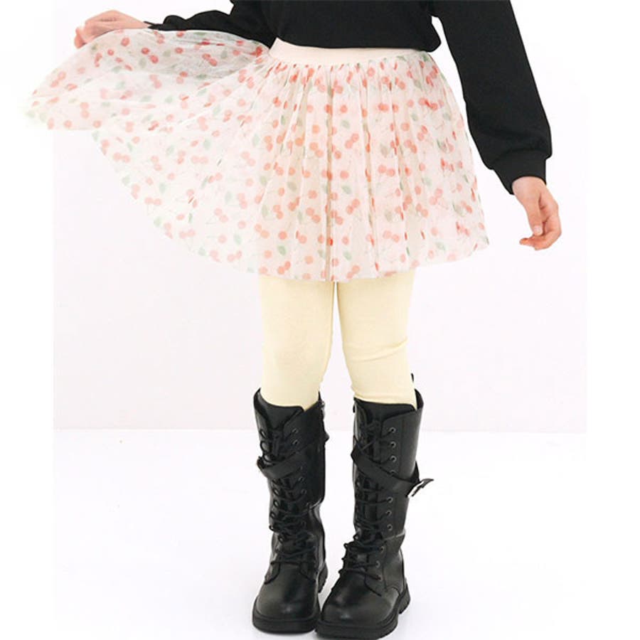 【ブラック×チェリー柄】チュールスカッツ 子供服 キッズ 女の子 春 夏 秋 冬 韓国子供服