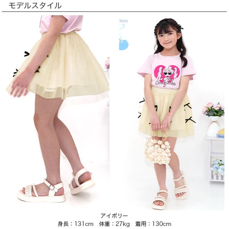 チュールスカート リボン ウエストゴム