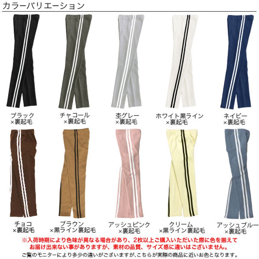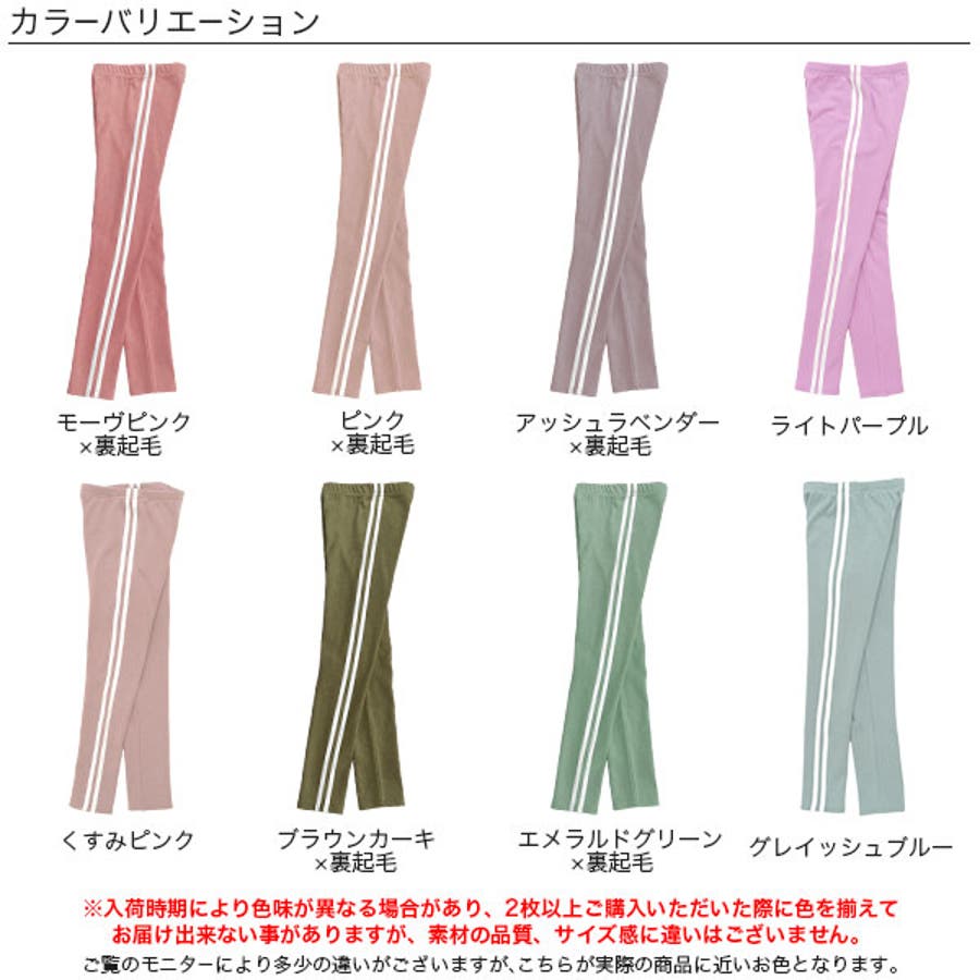 | 色 | ブラック×裏起毛 / チャコール×裏起毛 / ネイビー×裏起毛 / アッシュラベンダー×裏起毛 / アッシュピンク×裏起毛 / アッシュブルー×裏起毛 / チョコ×裏起毛 / ブラウン×黒ライン裏起毛 / クリーム×黒ライン裏起毛 / ホワイト×黒ライン裏起毛 / ピンク×裏起毛 / エメラルドグリーン×裏起毛 / ブラウンカーキ×裏起毛 / 杢グレー×裏起毛 / モーヴピンク×裏起毛 / くすみピンク / グレイッシュブルー / ライトパープル |