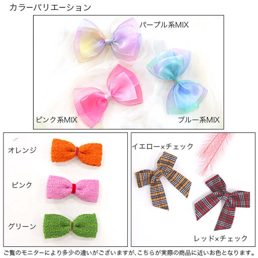 | 色 | オレンジ / ピンク / グリーン / レッド×チェック / イエロー×チェック / パープル系MIX / ピンク系MIX / ブルー系MIX / アイボリー系×ダブルリボン / イエロー系×ダブルリボン / ライトピンク系×ダブルリボン / ピンク系×ダブルリボン / ラベンダー系×ダブルリボン |