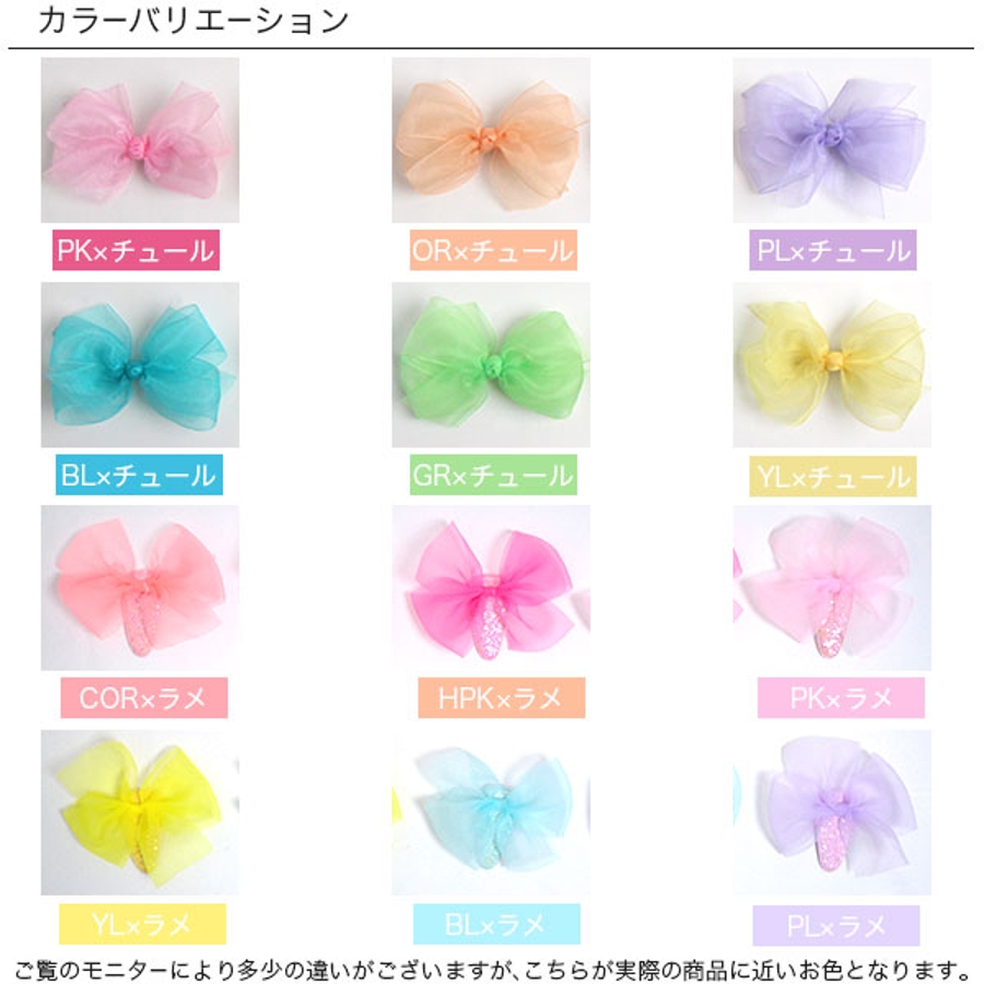 色 | PK×チュール / PL×チュール / BL×チュール / GR×チュール / YL×チュール / OR×チュール / BL×ラメ / PL×ラメ / PK×ラメ / HPK×ラメ / COR×ラメ / YL×ラメ |