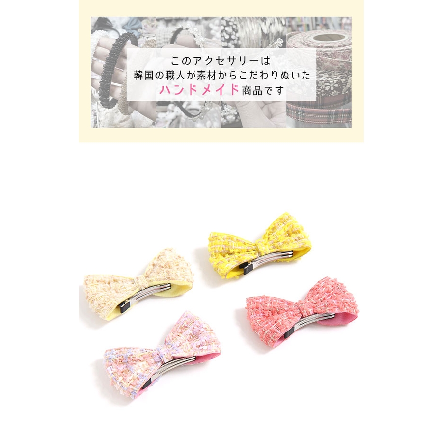 【23年SS新作】韓国子供服 韓国子ども服 韓国こども服 Bee キッズ ツイード ヘアピン リボン ヘアアクセサリー 結婚式 発表会 春 夏 秋 冬 フォーマル ◇リボンヘアクリップ◇