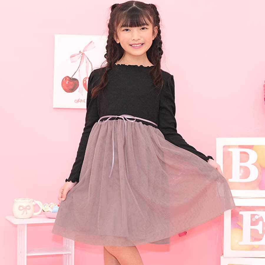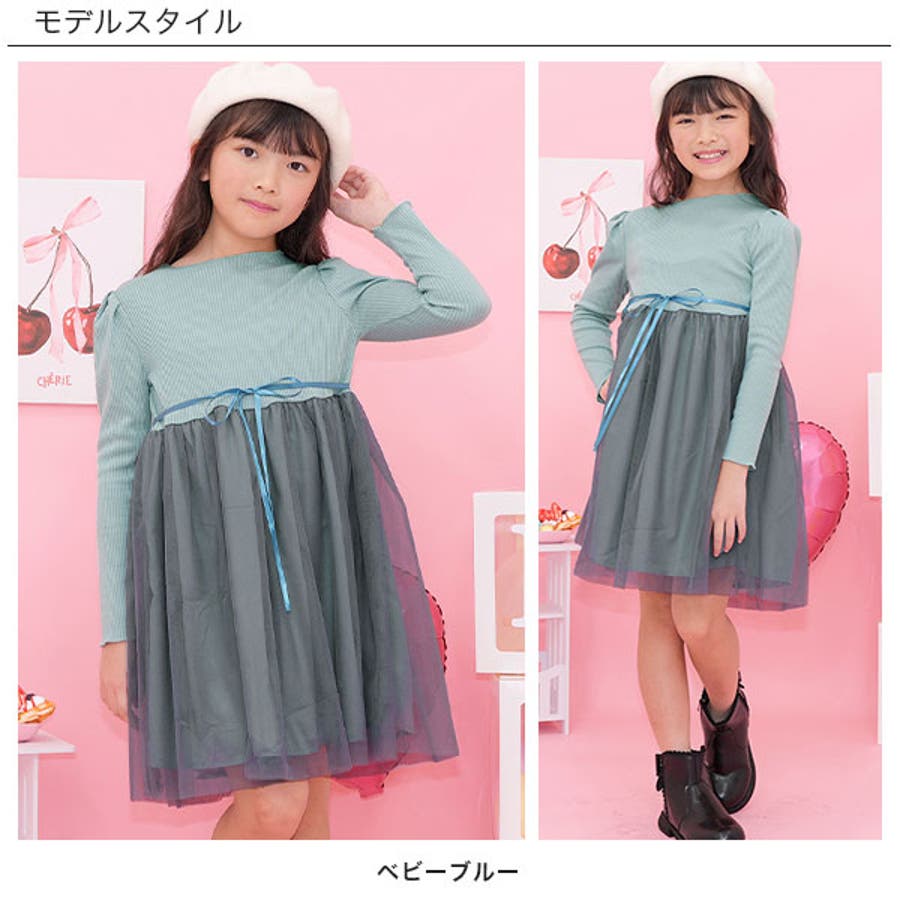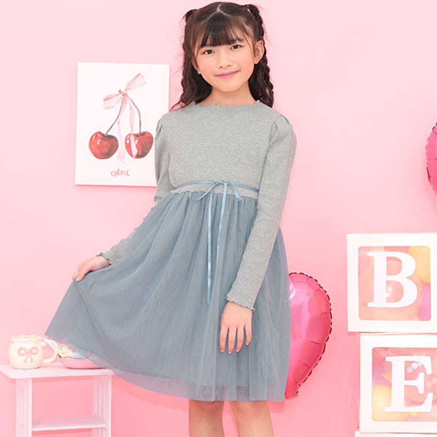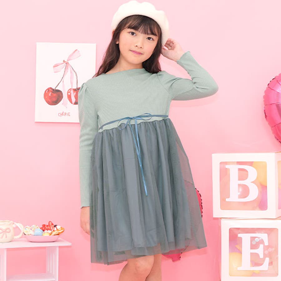 チュール切替えワンピース リボン メロウ