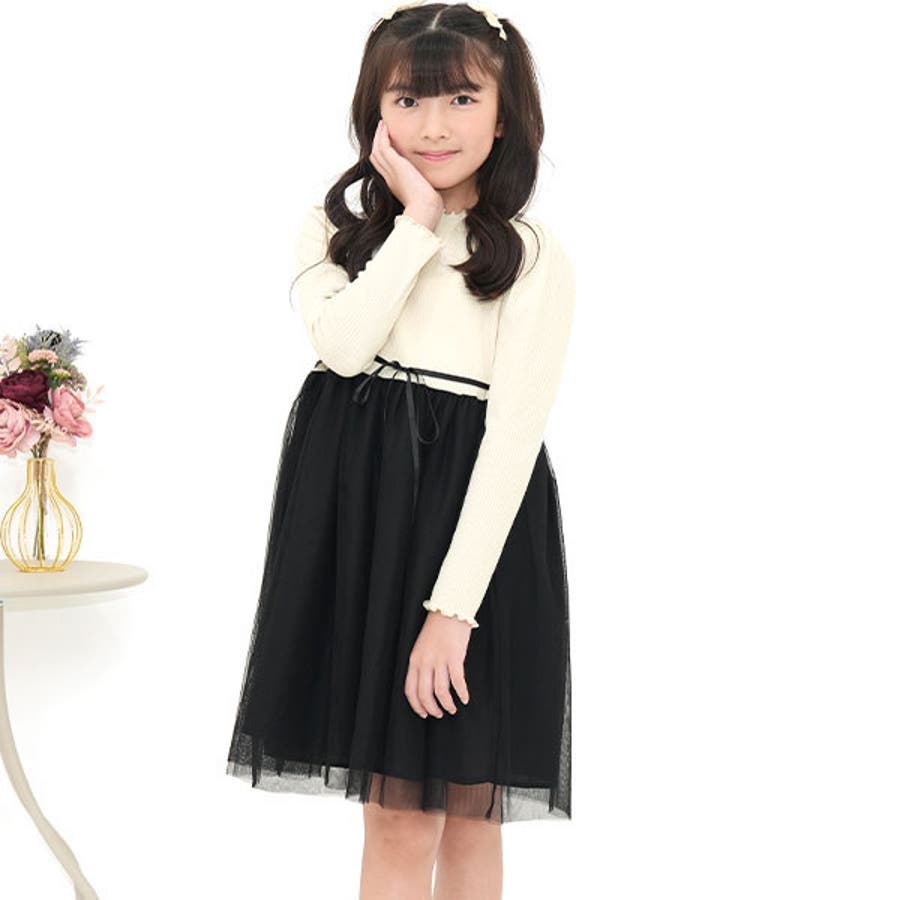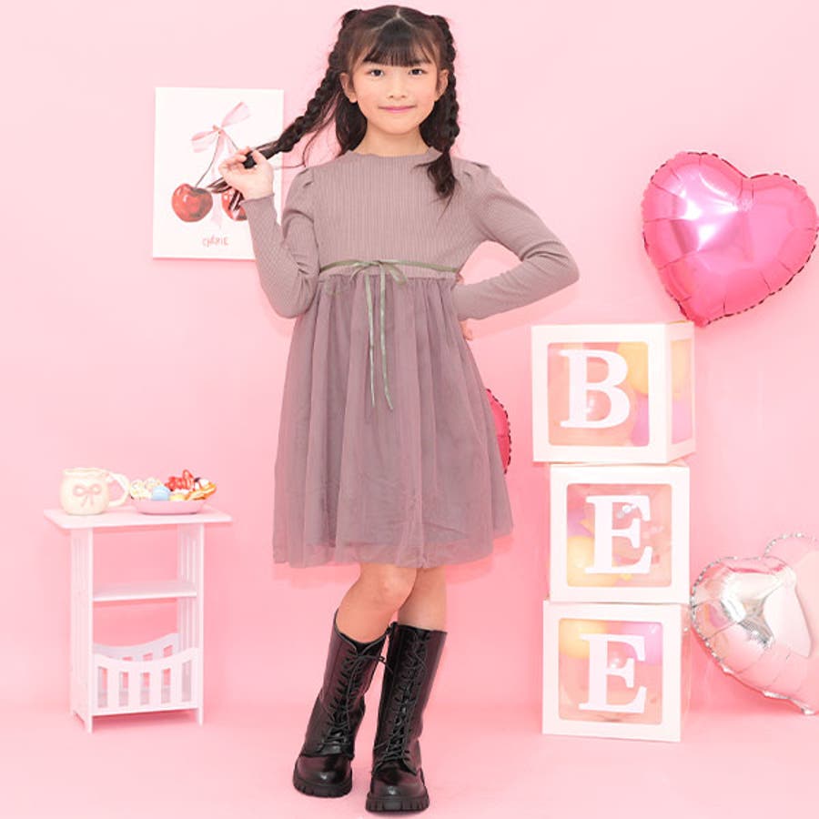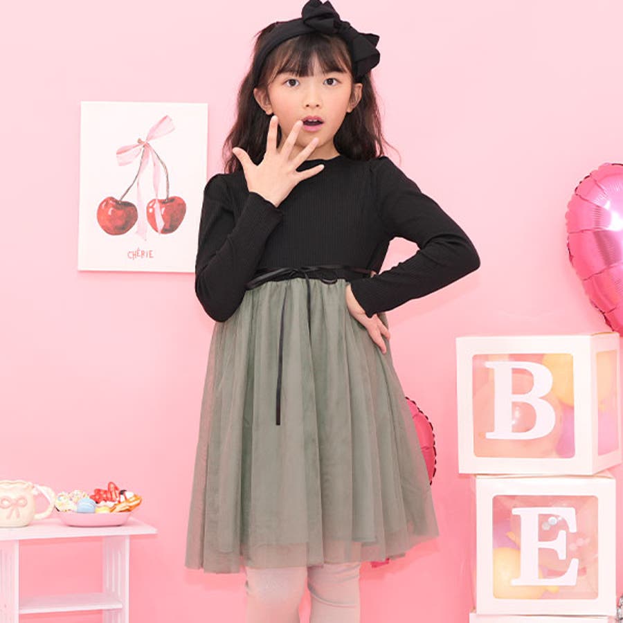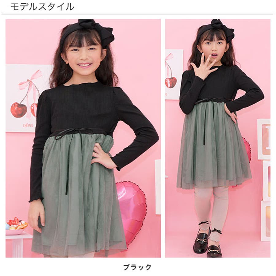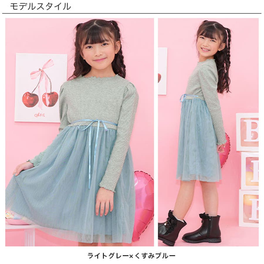 チュール切替えワンピース リボン メロウ