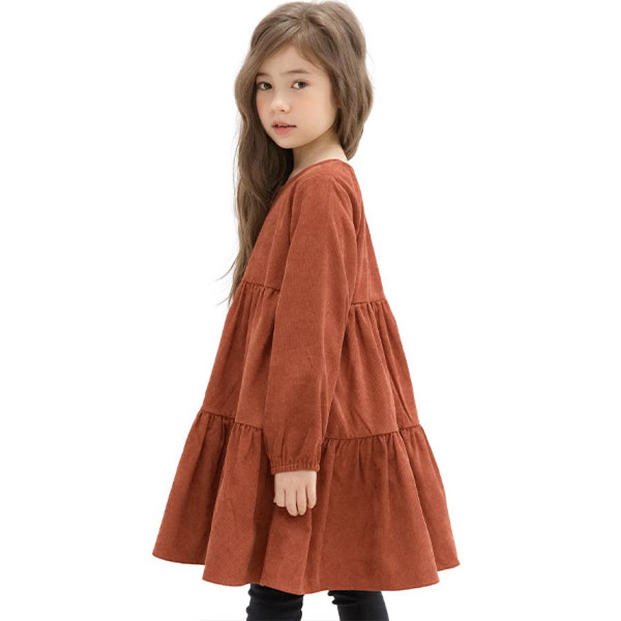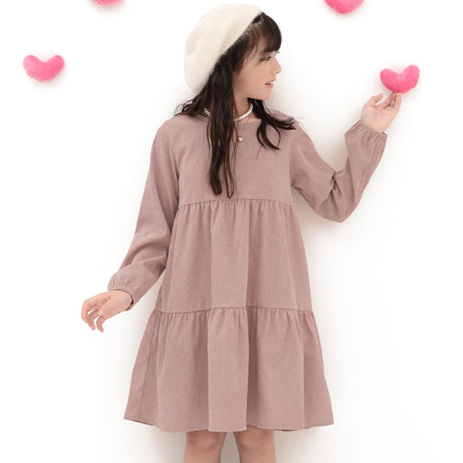 コーデュロイ風ワンピース ポケット ティアード