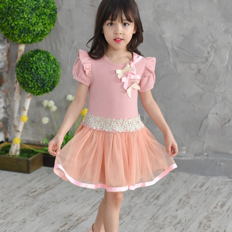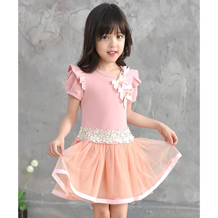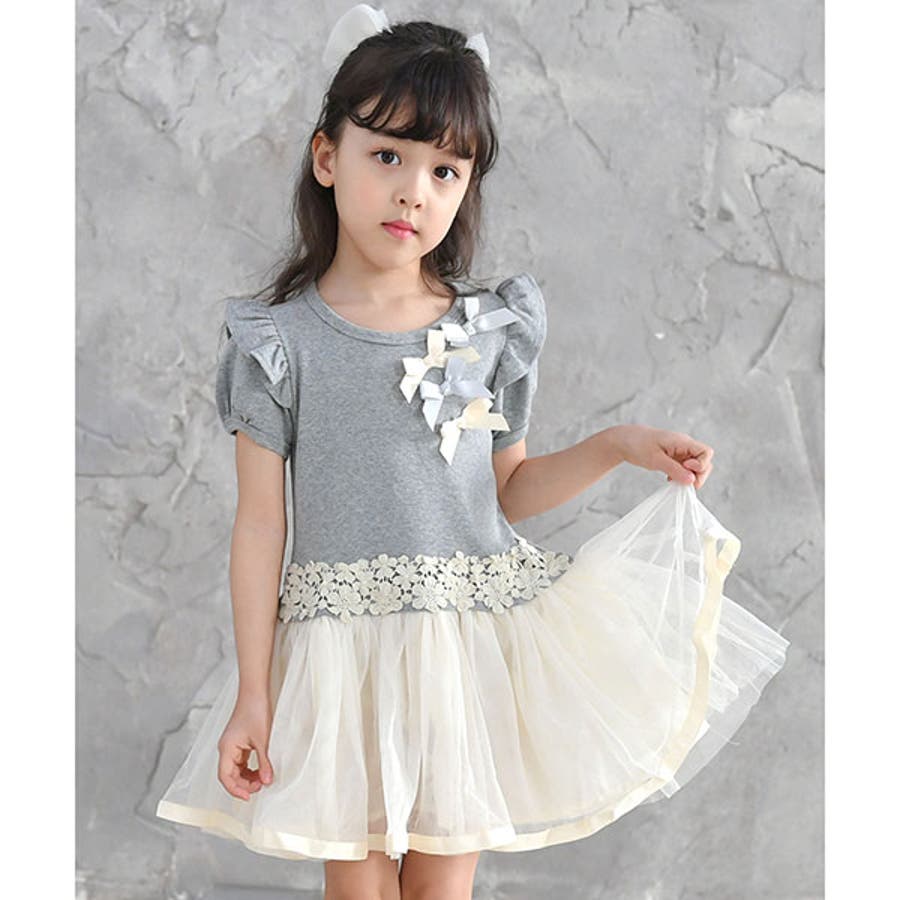韓国子供服 韓国子ども服 韓国こども服 Bee カジュアル ナチュラル キッズ 女の子 パフスリーブ フリル リボン 花レースチュール チュチュ プルオーバー 発表会 結婚式 入園式 入学式 卒園式 フォーマル 春 夏 90 100 110 120130140