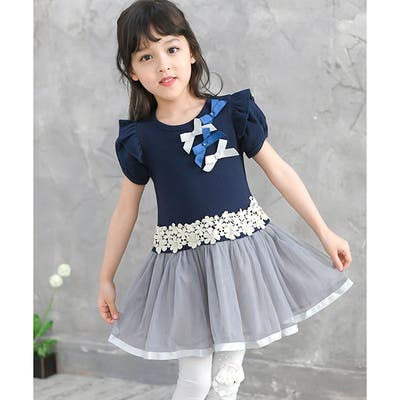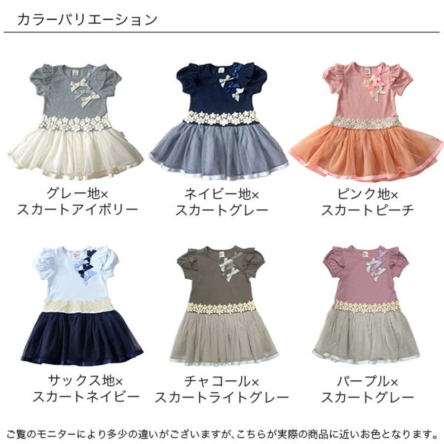 胸についているリボンと、切替えのチュールフレアスカートでさらに女の子らしく!