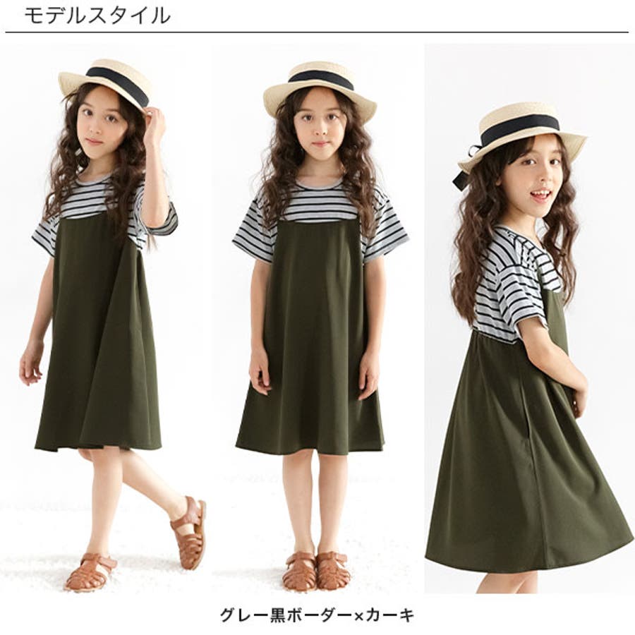 韓国子供服 子供服 子ども服 こども服 キッズ 女の子 ボーダー 重ね着 夏 100 110 120 130 140 150 ◇レイヤード風ワンピース◇