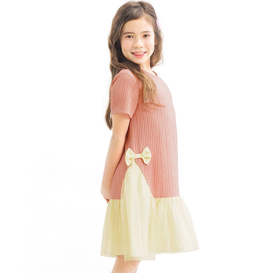 異素材切り替えワンピース 子供服 キッズ 女の子 春 夏 韓国子供服